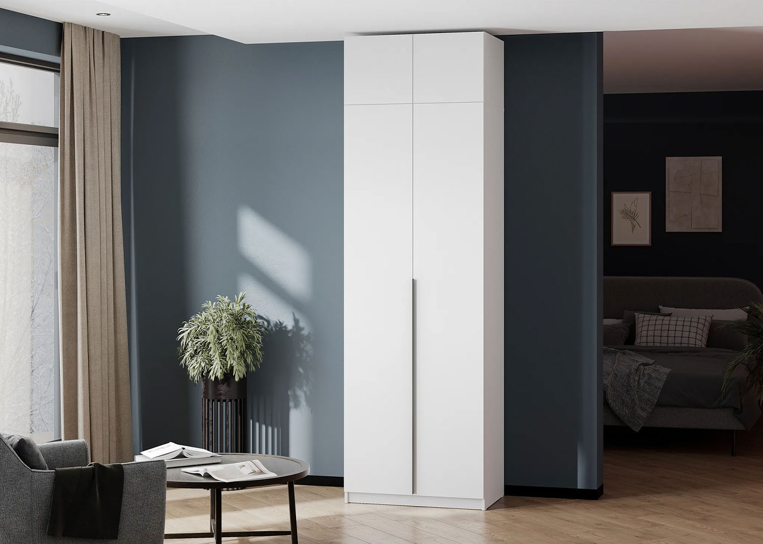 Антресоль поможет вам максимально использовать вертикальное пространство в комнате, что особенно актуально для небольших помещений. Она идеально подойдёт для хранения вещей, которые редко используются, таких как сезонная одежда, постельное бельё, одеяла и подушки.
