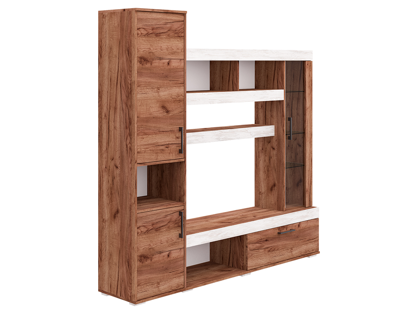 Базовый модуль гостиной Cити можно дополнить различными элементами, которые будут уместны как в гостиной, так и в спальне, детской и даже прихожей. Таким образом, вы создаёте уникальный ансамбль, исходя из своих потребностей. Стенка Cити представляет собой синтез классики и современных веяний дизайна. Чёткость линий и функциональность – главные характеристики модели. Центр композиции составляет ниша под телевизор размером 1086x570 мм., ниже – открытая полка для игровой приставки или прочих предметов. Рядом с ней широкий шкаф с откидной дверцей. Большой плюс гостиной Cити – вместительность. Этой задаче служит шкаф с распашными дверцами в левой части модели. На две части его делит открытая ниша. Также гостиная богата полками различной длины. При чём выглядят они необычно, благодаря широким декоративным фасадам. Украшением Cити служит небольшой шкаф-витрина с полками за стеклянной дверцей. Эта деталь придаёт модели уникальность, воздушность и утончённость. Размер ниши под ТВ Ширина - 1086 (мм); Глубина - 380 (мм); Высота - 570 (мм)