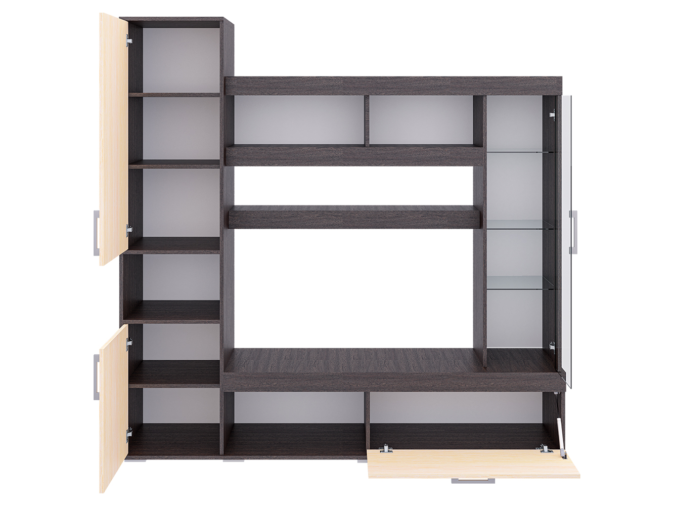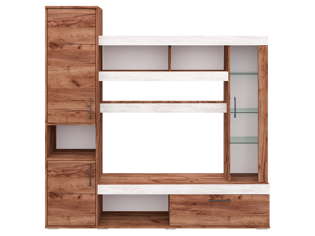 Базовый модуль гостиной Cити можно дополнить различными элементами, которые будут уместны как в гостиной, так и в спальне, детской и даже прихожей. Таким образом, вы создаёте уникальный ансамбль, исходя из своих потребностей. Стенка Cити представляет собой синтез классики и современных веяний дизайна. Чёткость линий и функциональность – главные характеристики модели. Центр композиции составляет ниша под телевизор размером 1086x570 мм., ниже – открытая полка для игровой приставки или прочих предметов. Рядом с ней широкий шкаф с откидной дверцей. Большой плюс гостиной Cити – вместительность. Этой задаче служит шкаф с распашными дверцами в левой части модели. На две части его делит открытая ниша. Также гостиная богата полками различной длины. При чём выглядят они необычно, благодаря широким декоративным фасадам. Украшением Cити служит небольшой шкаф-витрина с полками за стеклянной дверцей. Эта деталь придаёт модели уникальность, воздушность и утончённость. Размер ниши под ТВ Ширина - 1086 (мм); Глубина - 380 (мм); Высота - 570 (мм)