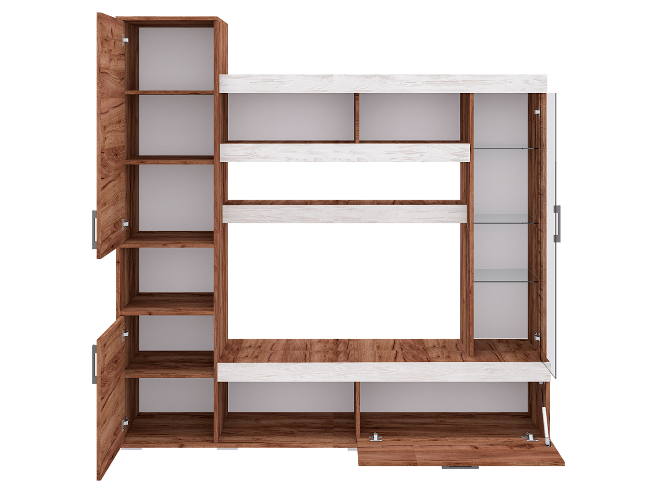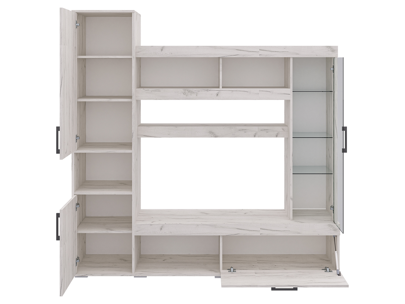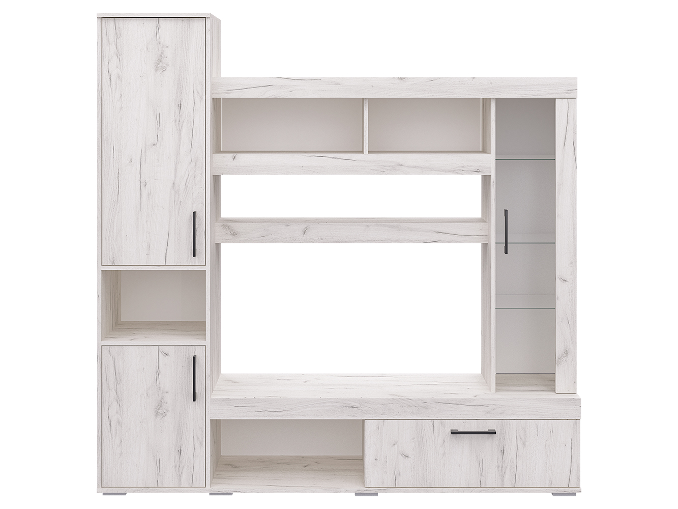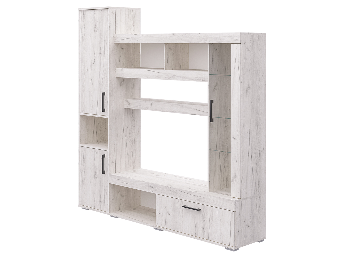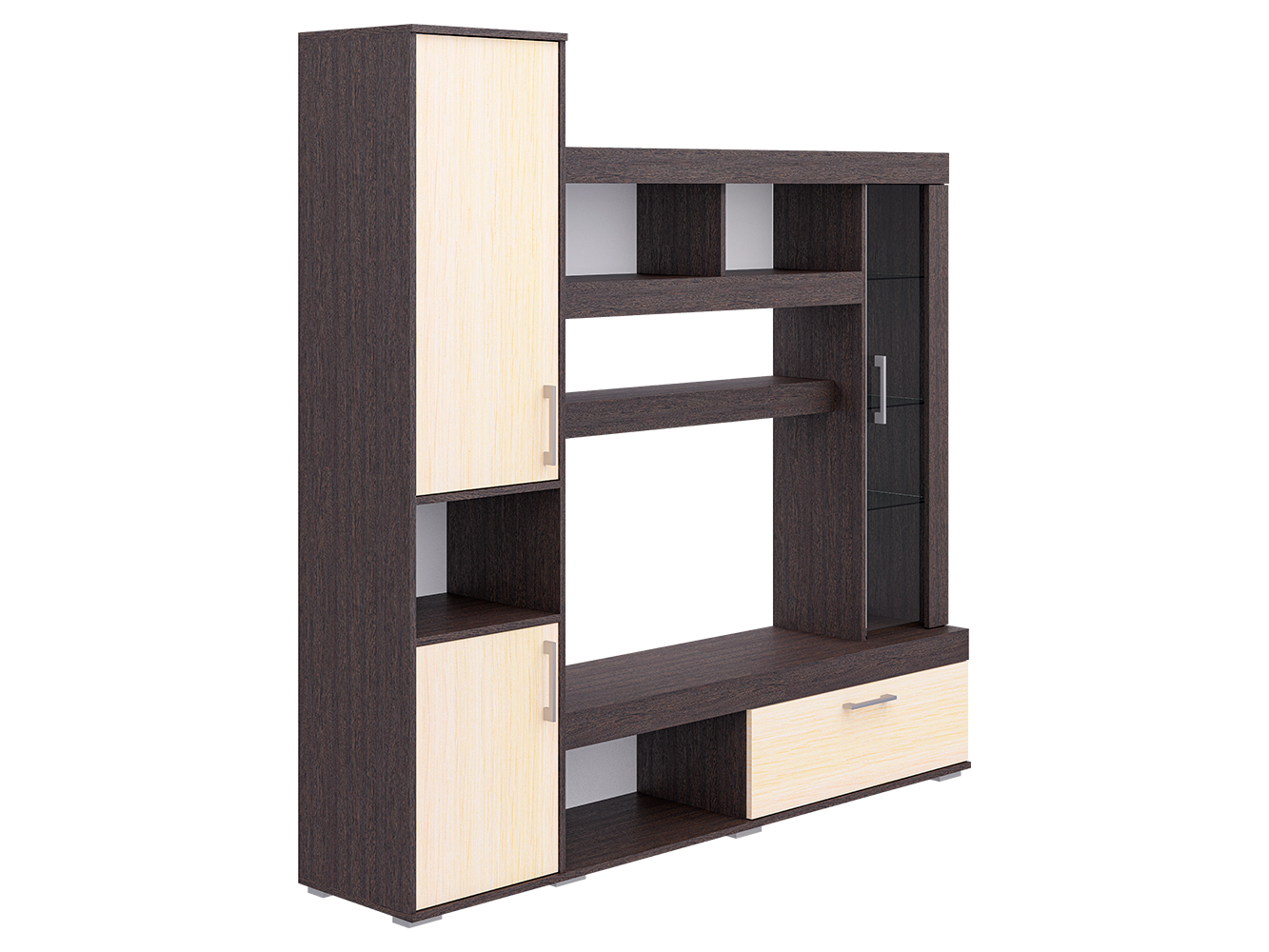 Базовый модуль гостиной Cити можно дополнить различными элементами, которые будут уместны как в гостиной, так и в спальне, детской и даже прихожей. Таким образом, вы создаёте уникальный ансамбль, исходя из своих потребностей. Стенка Cити представляет собой синтез классики и современных веяний дизайна. Чёткость линий и функциональность – главные характеристики модели. Центр композиции составляет ниша под телевизор размером 1086x570 мм., ниже – открытая полка для игровой приставки или прочих предметов. Рядом с ней широкий шкаф с откидной дверцей. Большой плюс гостиной Cити – вместительность. Этой задаче служит шкаф с распашными дверцами в левой части модели. На две части его делит открытая ниша. Также гостиная богата полками различной длины. При чём выглядят они необычно, благодаря широким декоративным фасадам. Украшением Cити служит небольшой шкаф-витрина с полками за стеклянной дверцей. Эта деталь придаёт модели уникальность, воздушность и утончённость. Размер ниши под ТВ Ширина - 1086 (мм); Глубина - 380 (мм); Высота - 570 (мм)