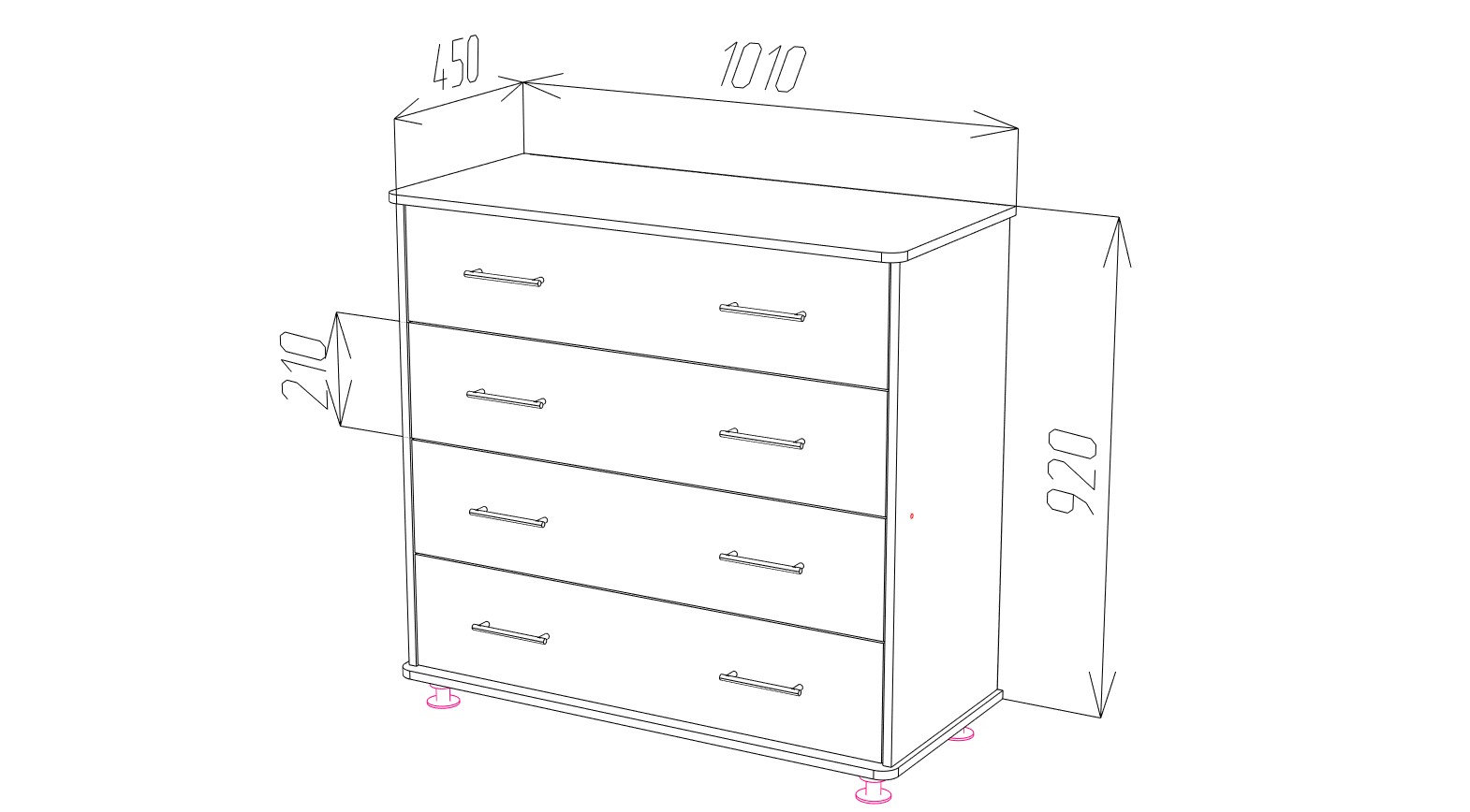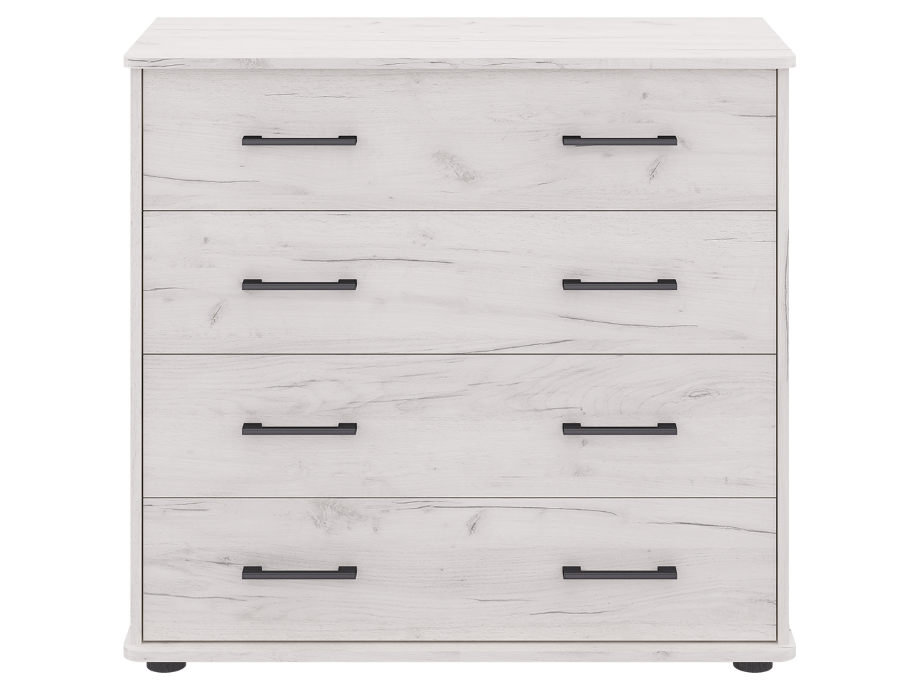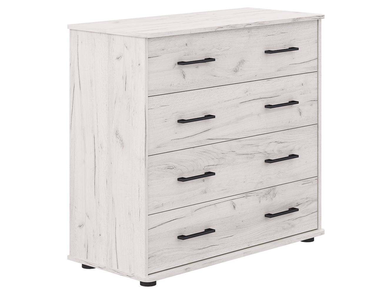 Модель оснащена четырьмя выдвижными ящиками с шариковыми направляющими полного выдвижения. Плавный и бесшумный ход обеспечивает комфортное использование каждый день, а полный доступ к содержимому упрощает хранение одежды, белья, документов и других вещей.