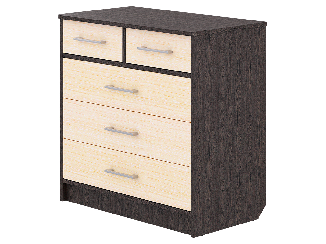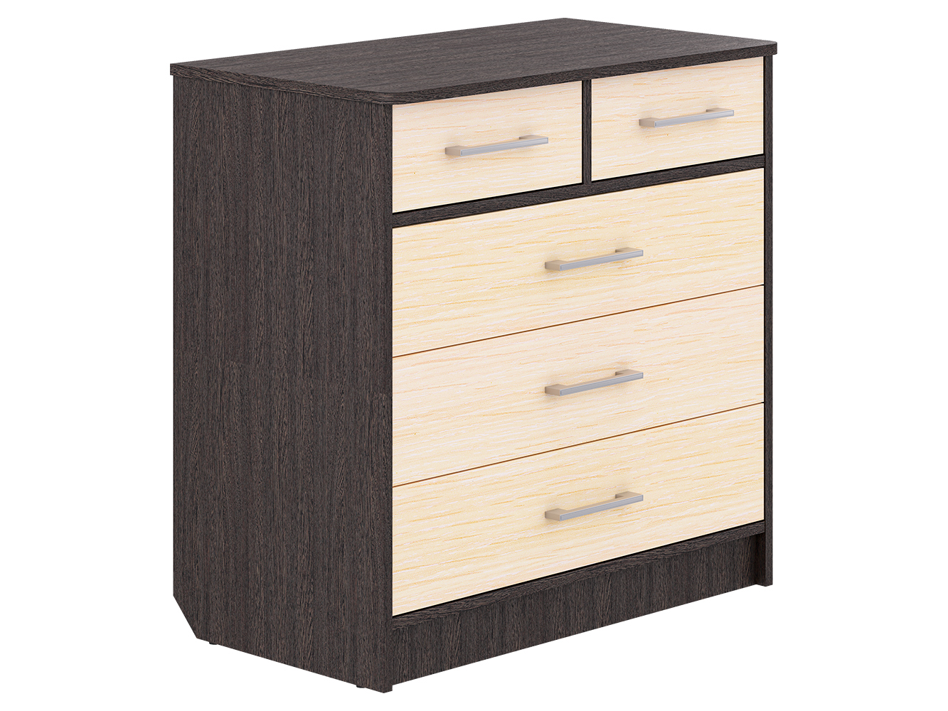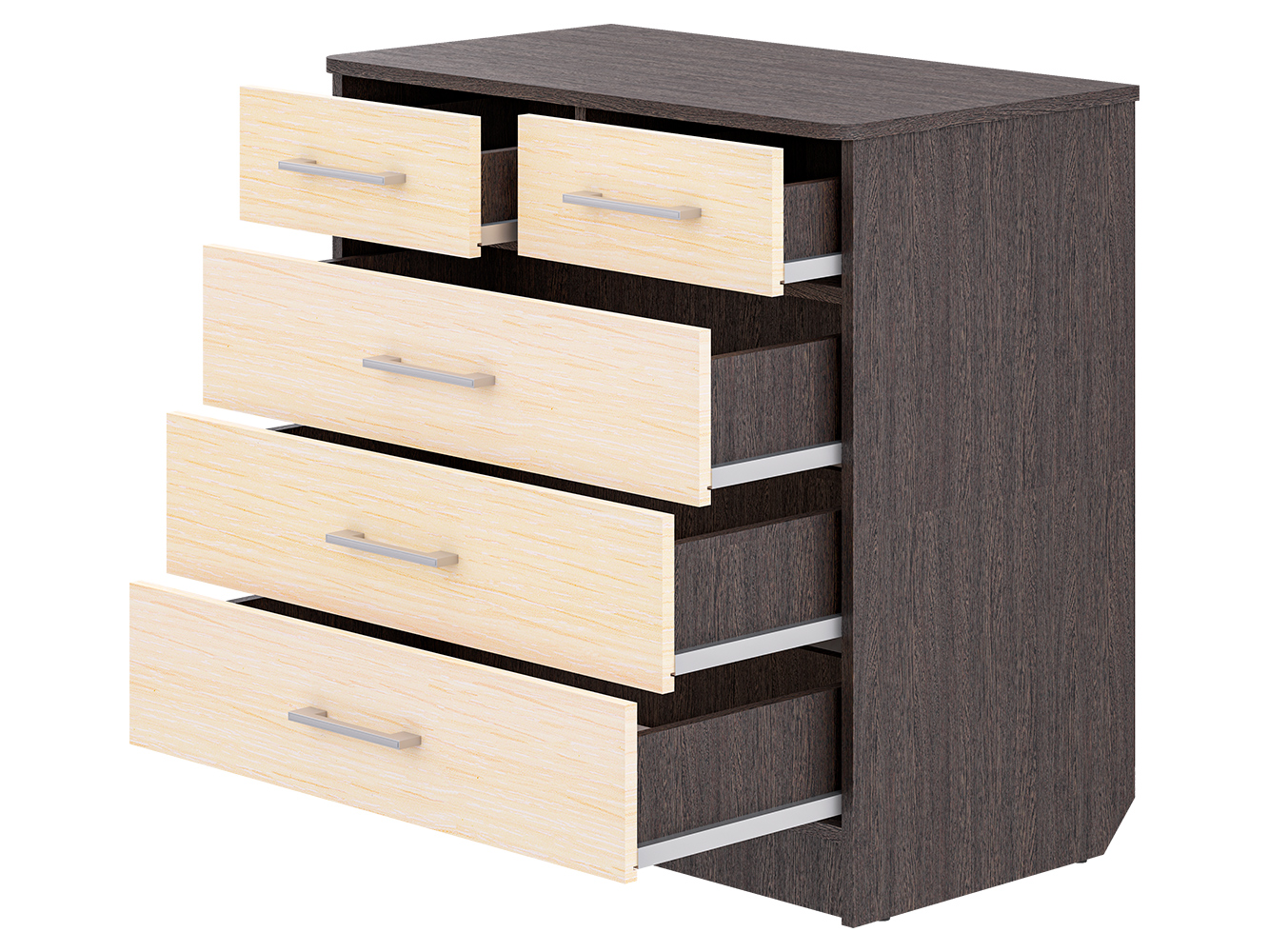 Модель оснащена пятью вместительными ящиками с направляющими полного выдвижения. Плавный и бесшумный ход обеспечивает комфортное ежедневное использование, а продуманная конструкция позволяет удобно хранить одежду, белье, документы и другие вещи.