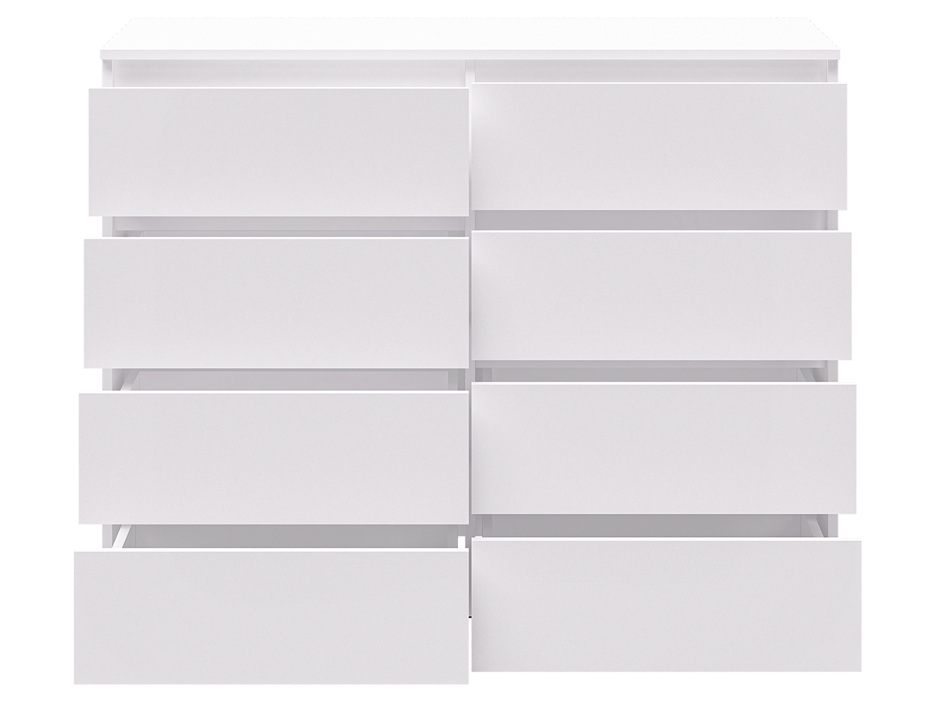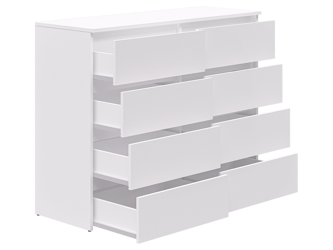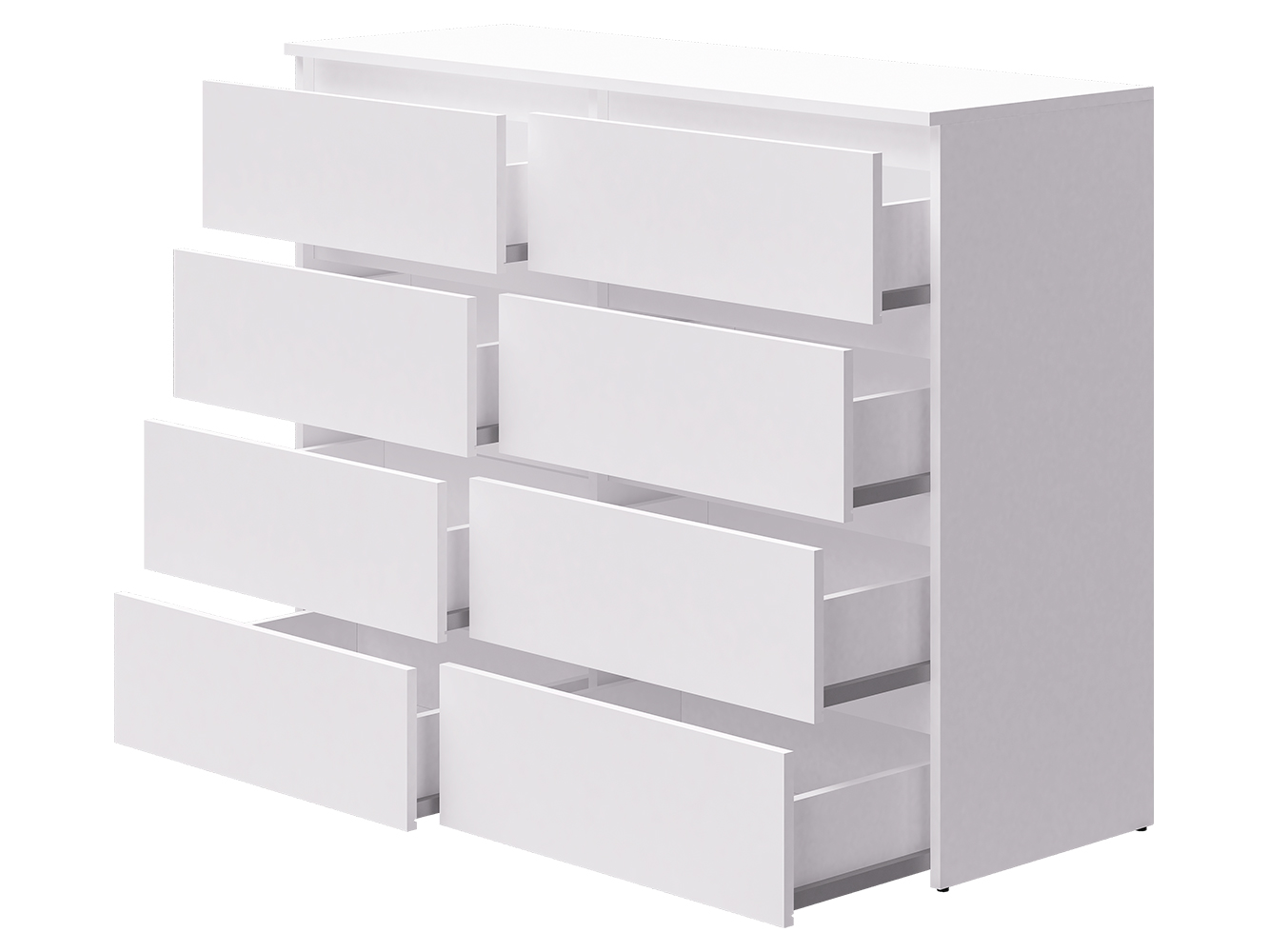 Модель оснащена восемью выдвижными ящиками с шариковыми направляющими полного выдвижения. Плавный и бесшумный ход обеспечивает комфортное ежедневное использование, а полный доступ к содержимому делает хранение более удобным и практичным.