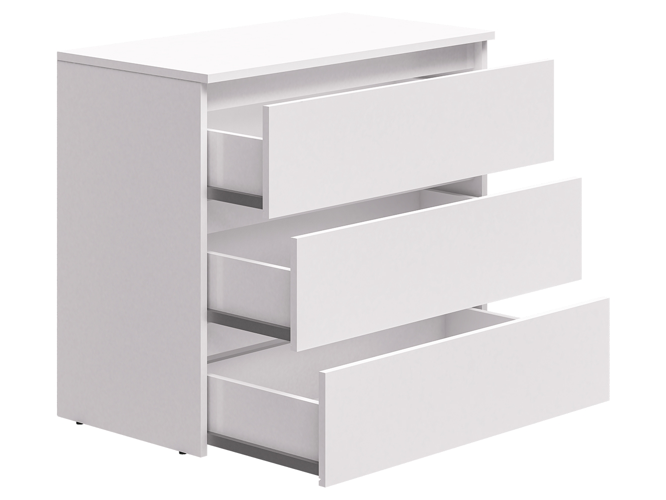 Конструкция оснащена тремя выдвижными ящиками с шариковыми направляющими полного выдвижения. Плавный и бесшумный ход обеспечивает комфортное использование, а удобный доступ к содержимому делает хранение вещей простым и практичным.