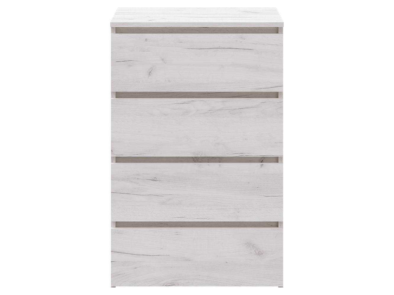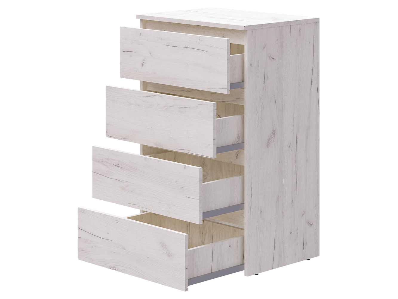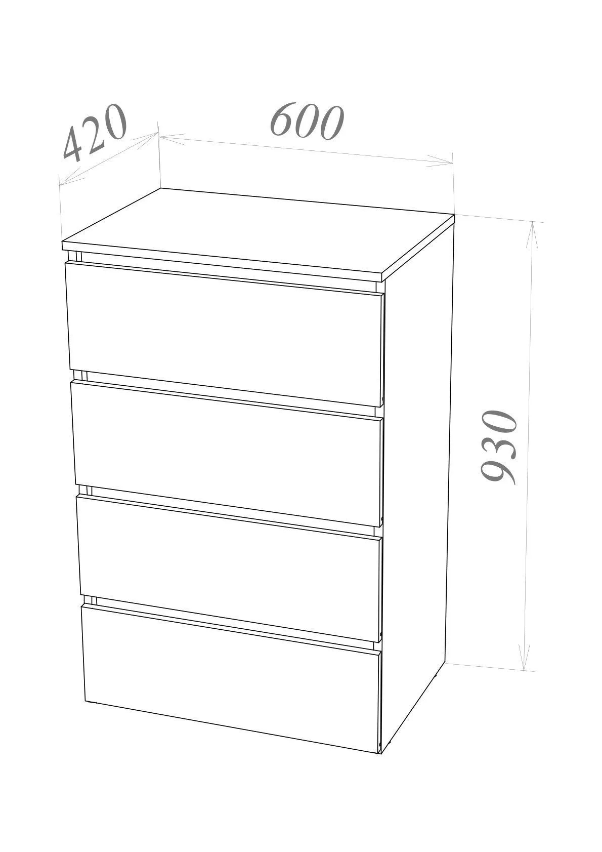 Вместительный комод обеспечит универсальную систему хранения. Оснащение: четыре ящика полного выдвижения бесшумного плавного хода. Скрытые опоры компенсируют возможные неровности пола, надёжный материл гарантирует долговечность. Лаконичная модель функциональна и может быть адаптирована под различные потребности и условия.
