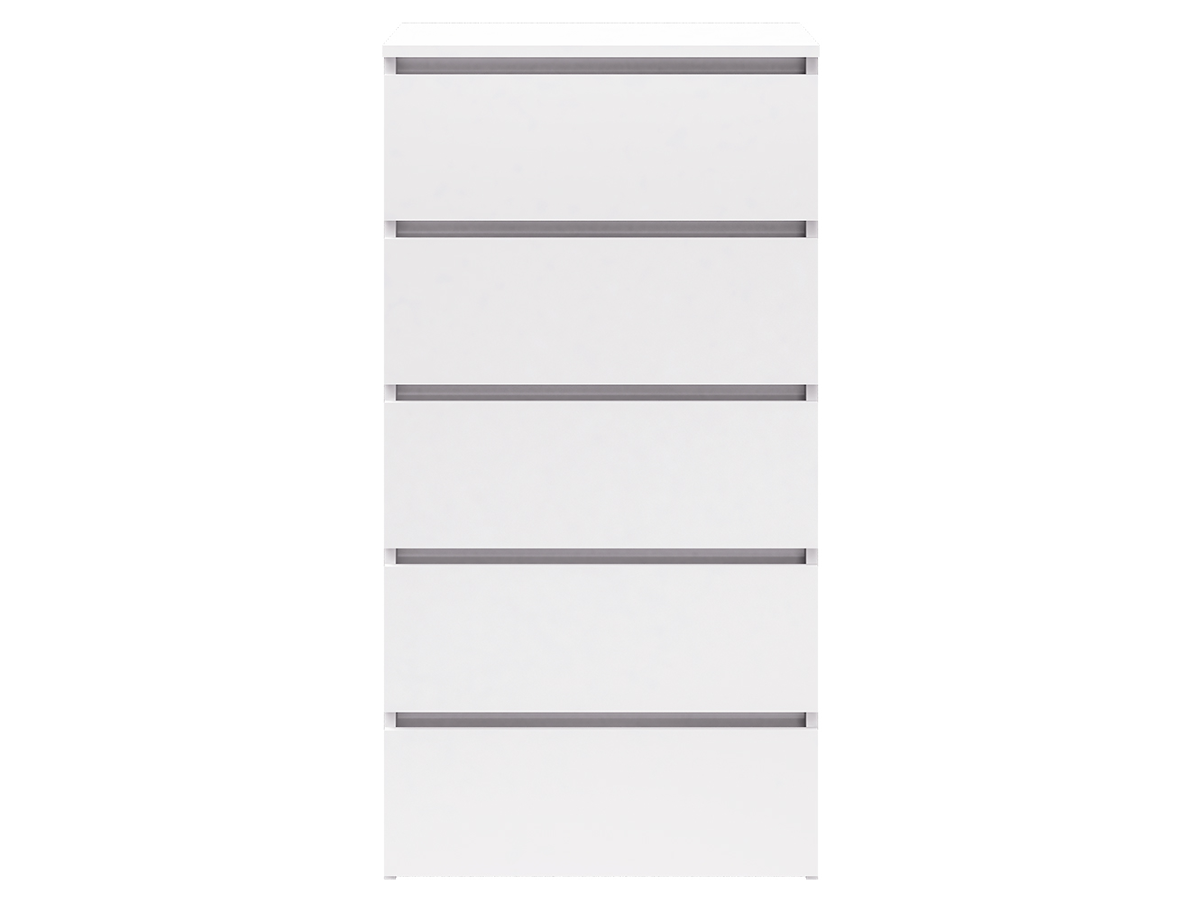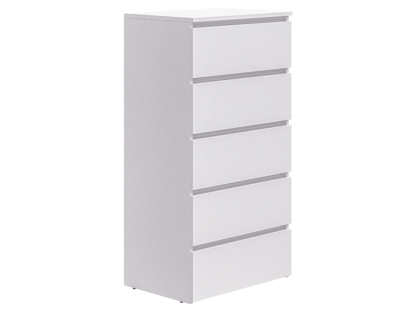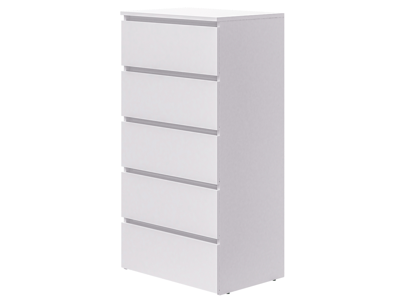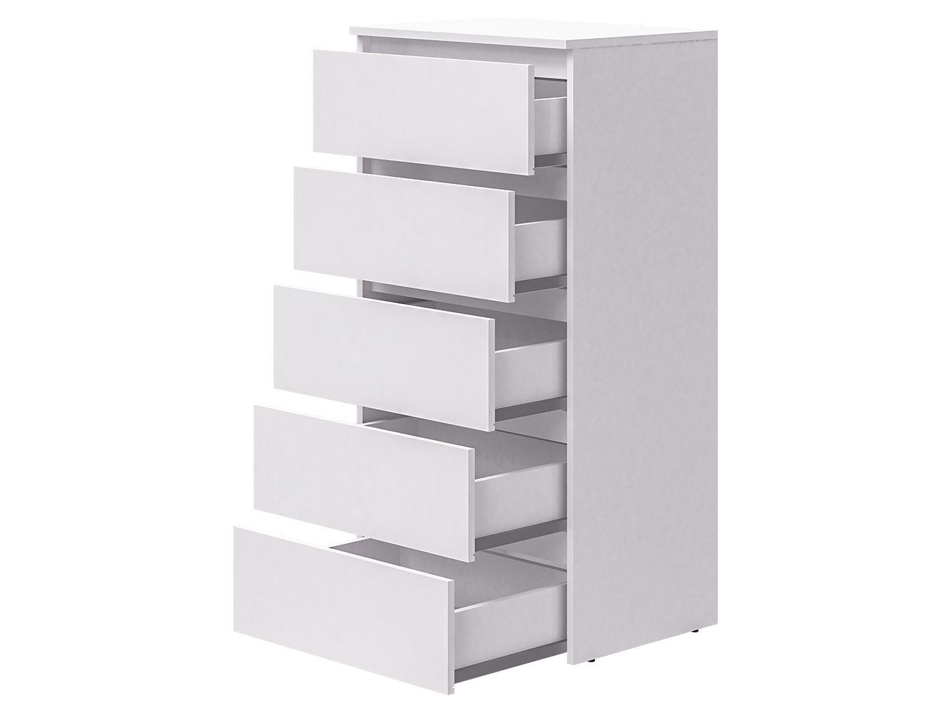 Комод оснащён пятью выдвижными ящиками с шариковыми направляющими полного выдвижения. Плавный и бесшумный ход обеспечивает комфортное ежедневное использование, а удобный доступ ко всему содержимому делает хранение максимально практичным и организованным.