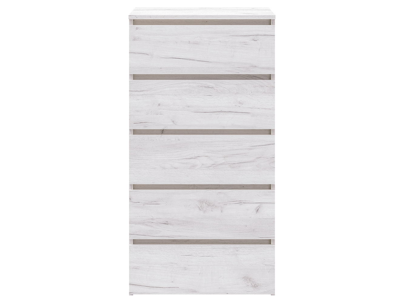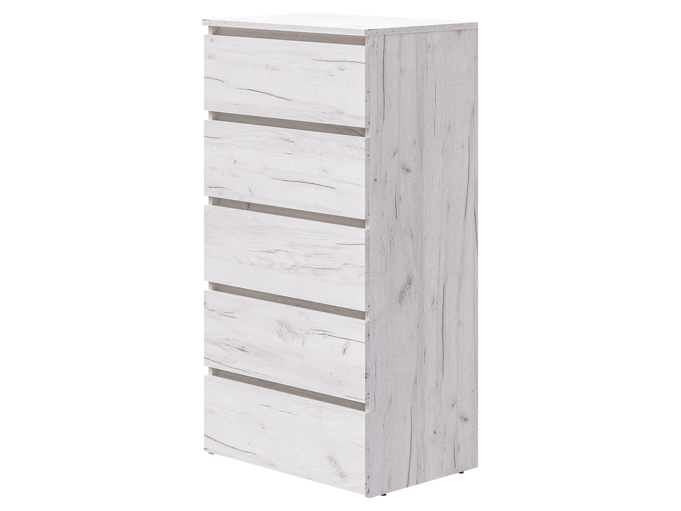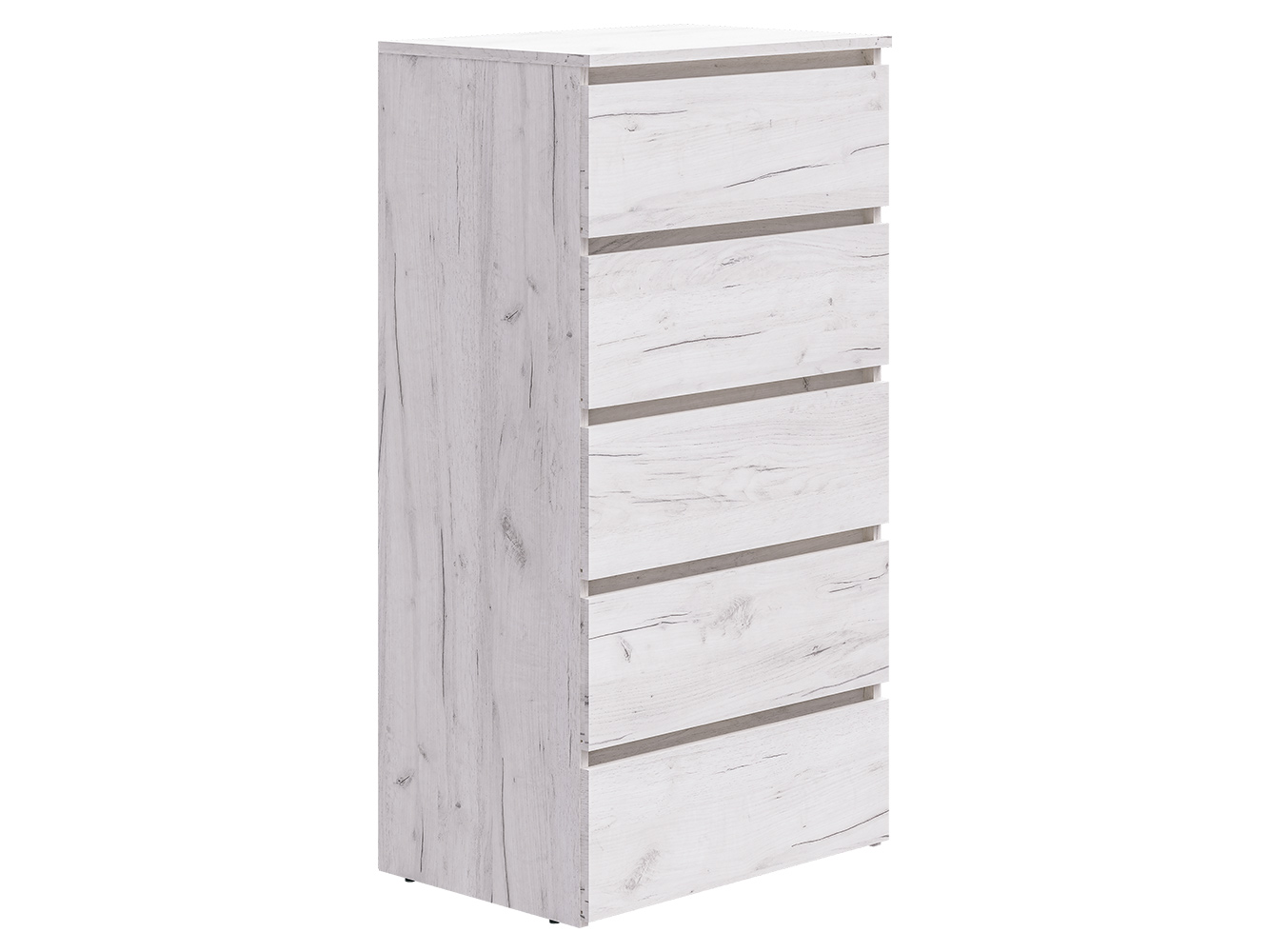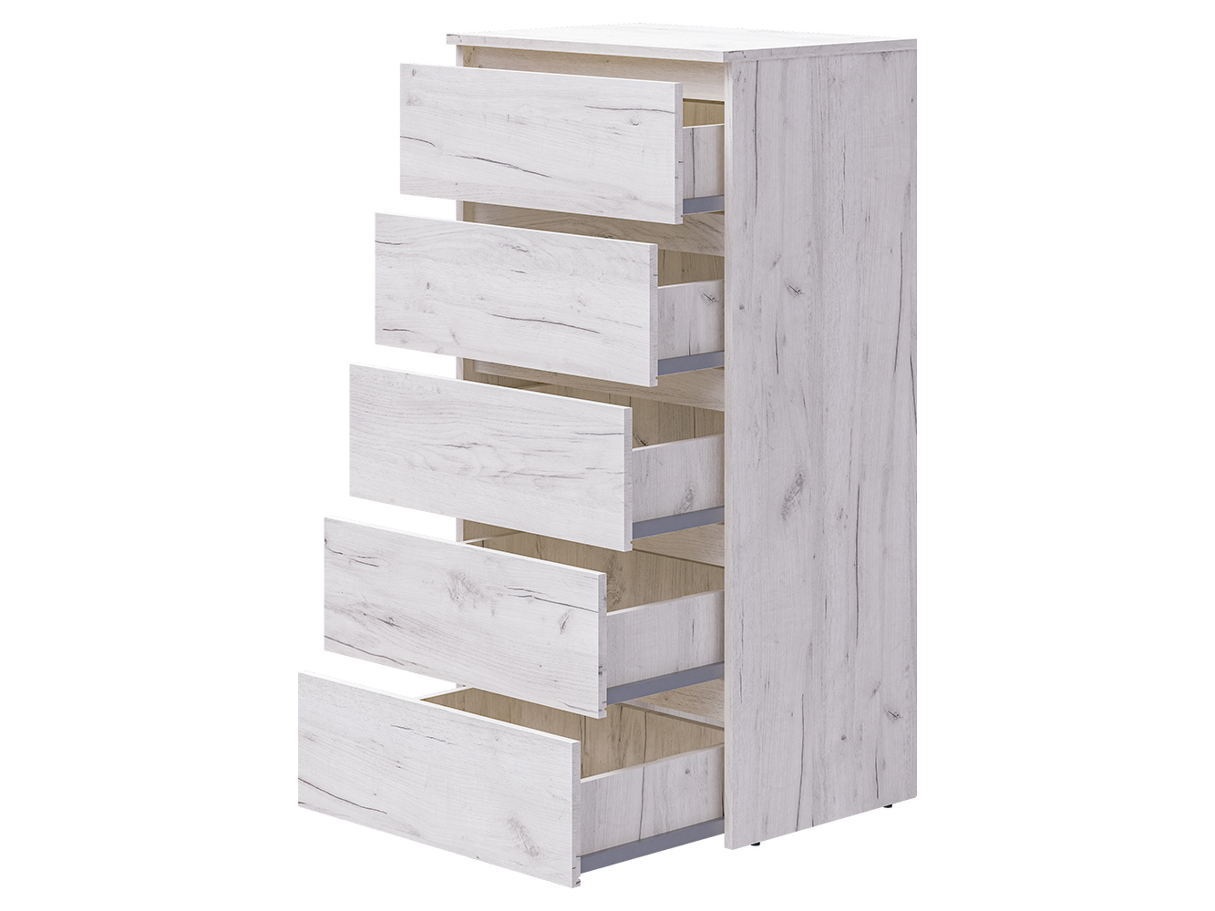 Комод оснащён пятью выдвижными ящиками с шариковыми направляющими полного выдвижения. Плавный и бесшумный ход обеспечивает комфортное ежедневное использование, а удобный доступ ко всему содержимому делает хранение максимально практичным и организованным.