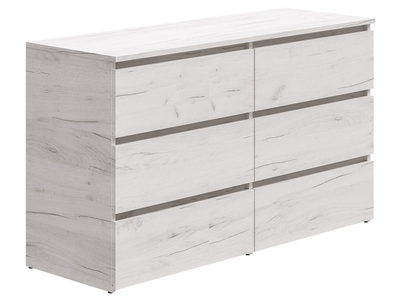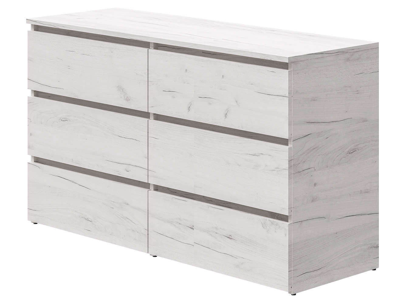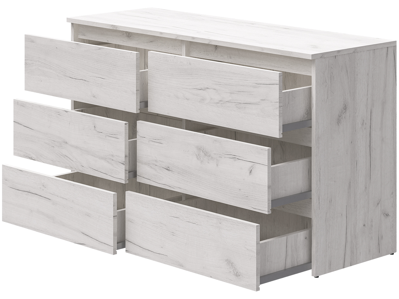Конструкция оснащена шестью выдвижными ящиками с шариковыми направляющими полного выдвижения. Плавный и бесшумный ход обеспечивает комфорт в повседневном использовании, а удобный доступ к содержимому позволяет рационально хранить одежду, белье и другие необходимые вещи.