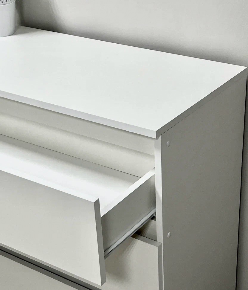 комод Денвер с шестью ящиками-практичное решение для организации хранения в доме. Благодаря лаконичному дизайну без ручек и белому цвету корпус выглядит современно и легко вписывается в любой интерьер.