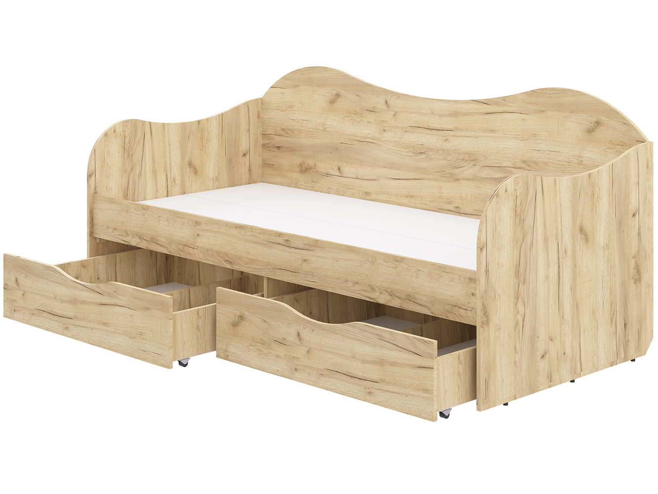 Односпальная подростковая кроватьПрочная, удобная и безопасная модель с двумя вместительными ящиками на колёсных опорах. Выполнена из экологичного ЛДСП класса Е1 с округлыми краями и лаконичным современным дизайном.