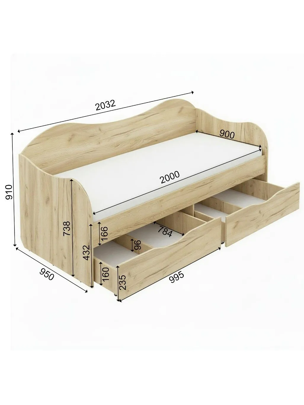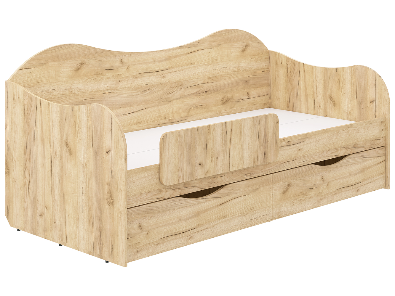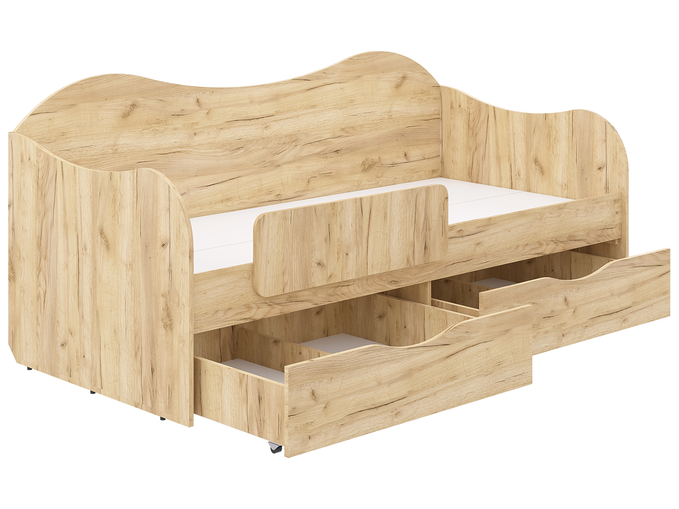 — Два вместительных выдвижных ящика — удобно хранить постельное бельё, одежду или игрушки.