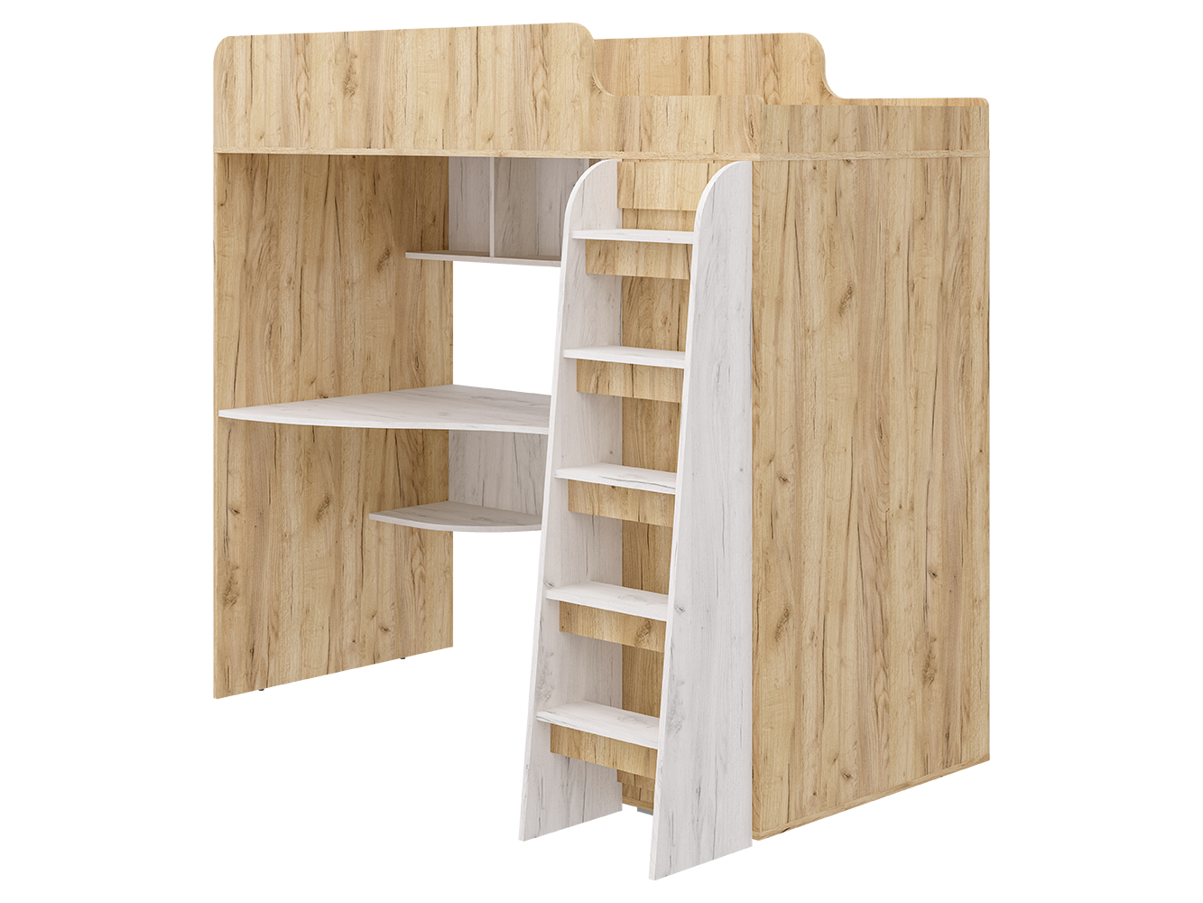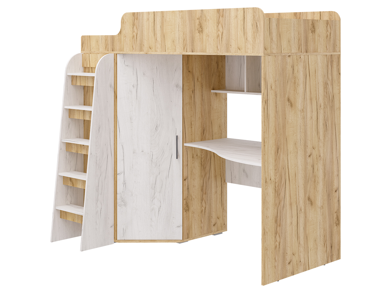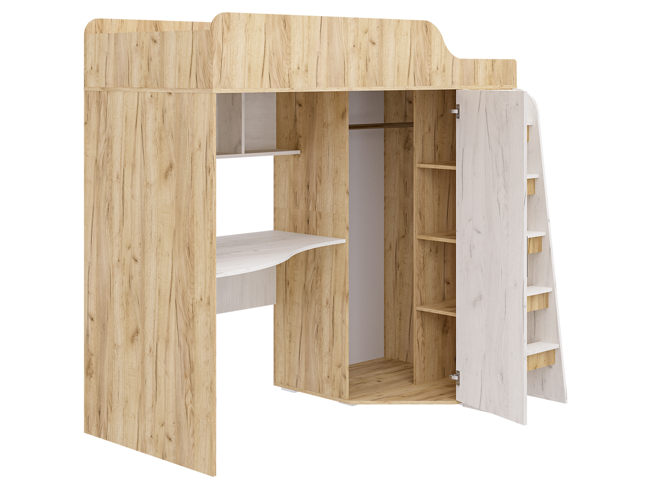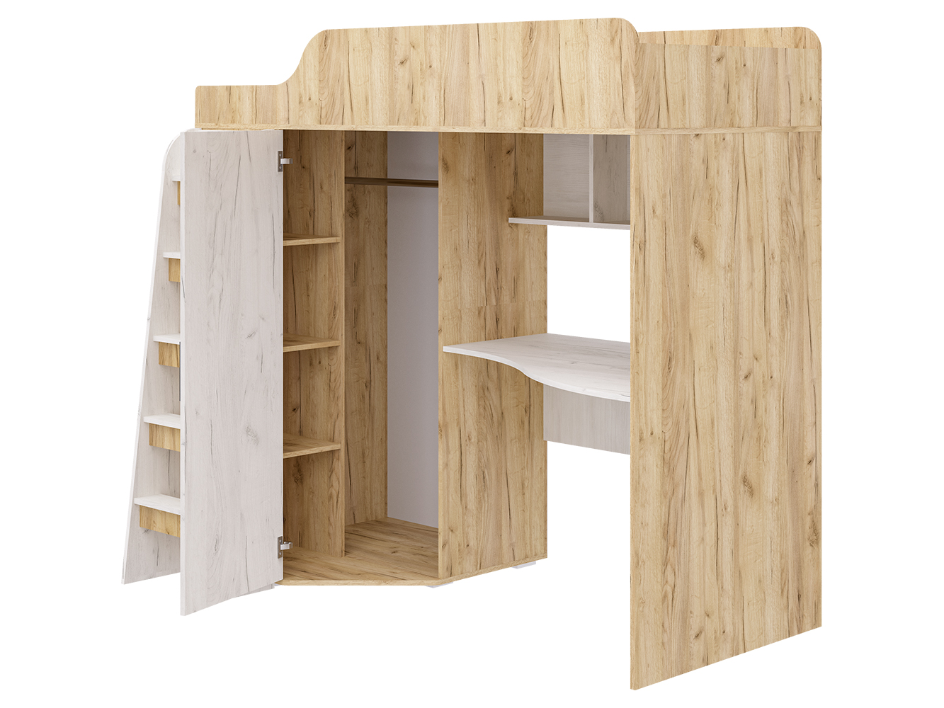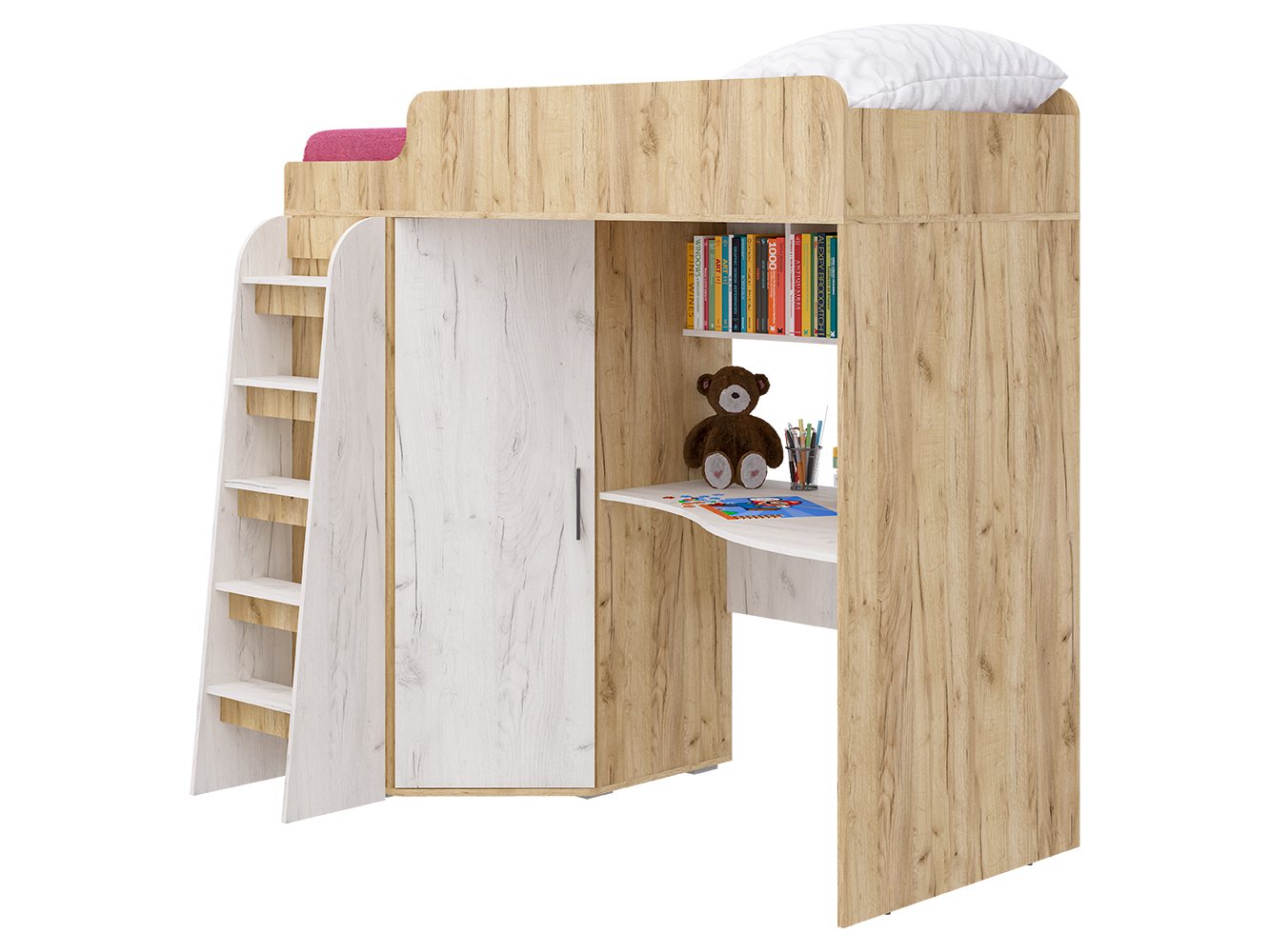 Кровать-чердак Морозко – это функциональный детский комплекс с полноценным рабочим местом, вместительным гардеробом и спальным местом.