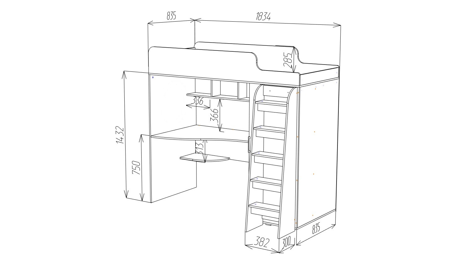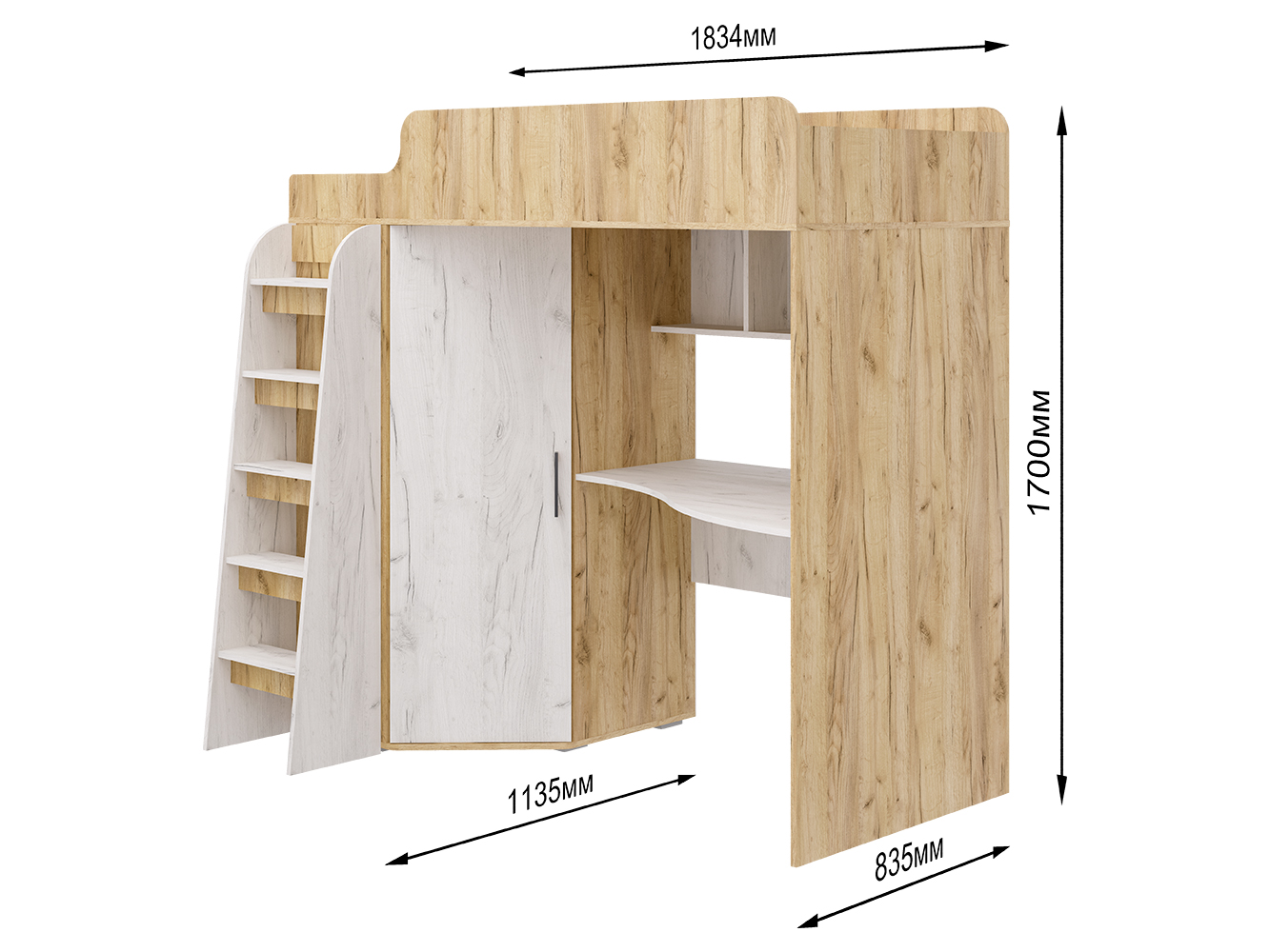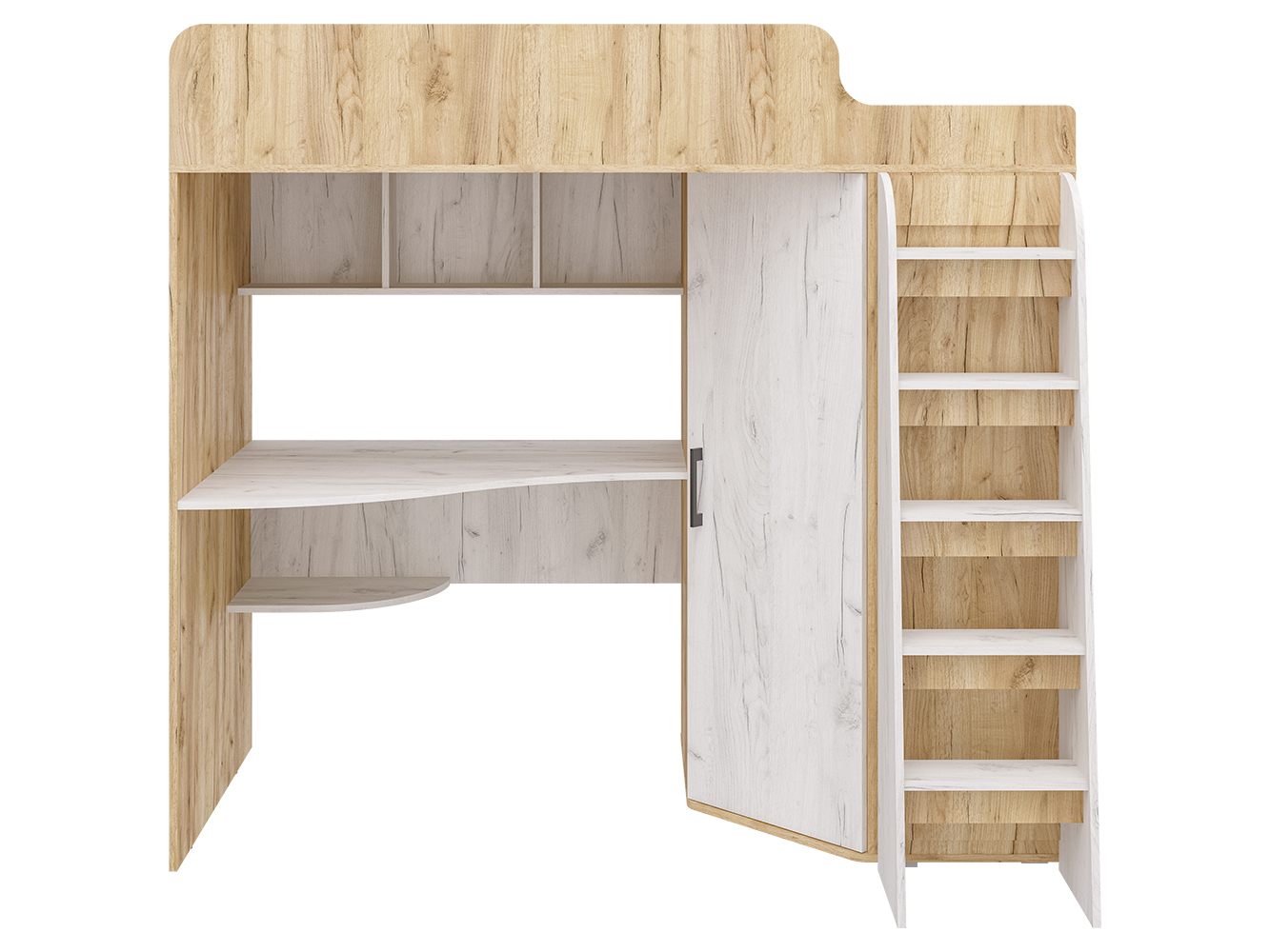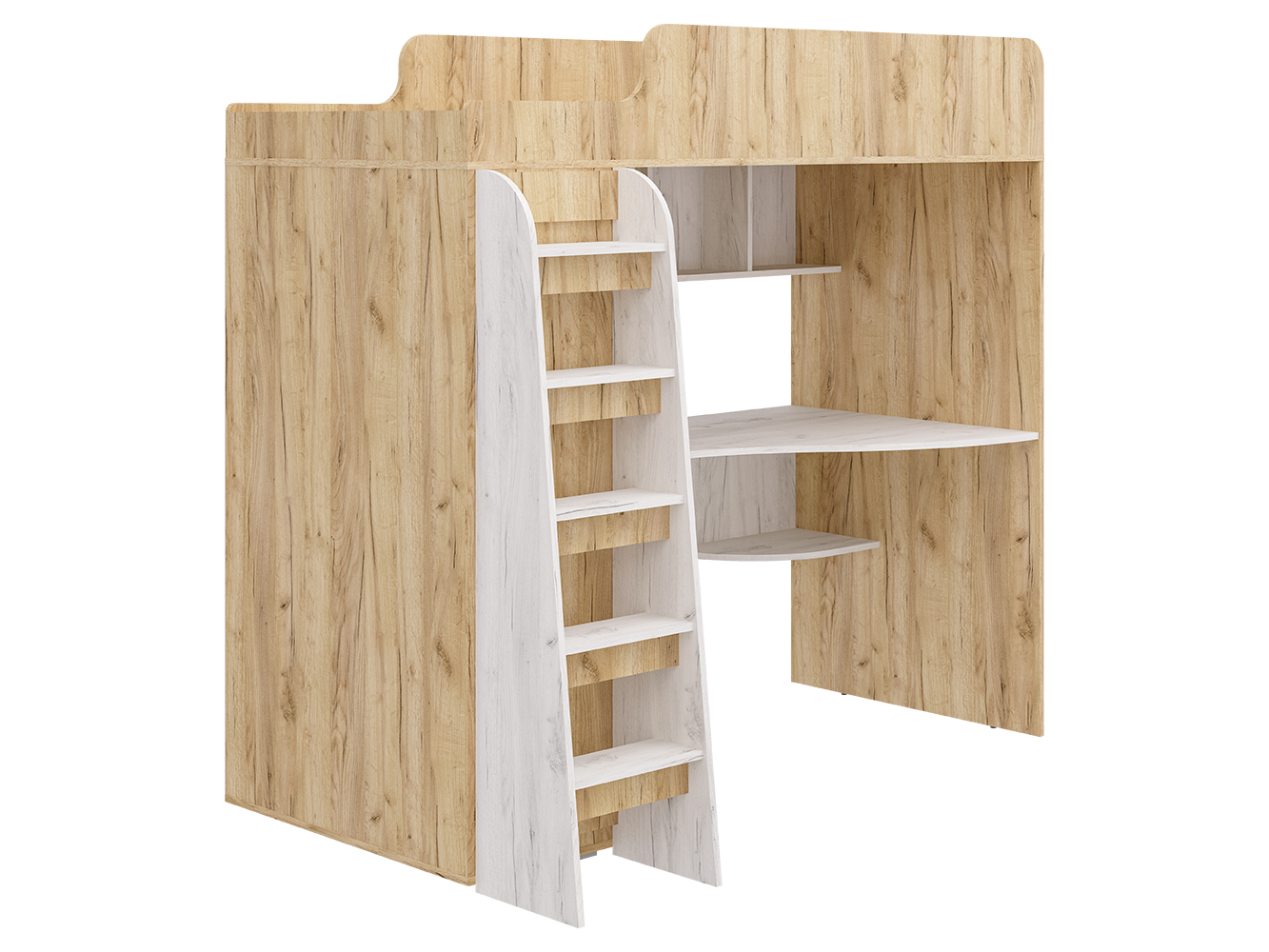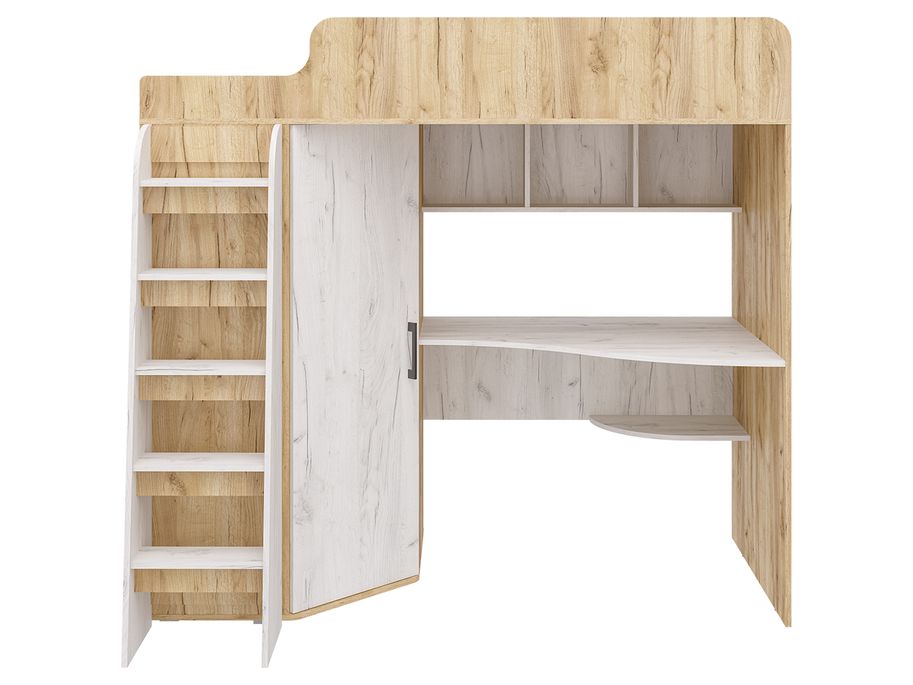 Кровать-чердак Морозко – это функциональный детский комплекс с полноценным рабочим местом, вместительным гардеробом и спальным местом.