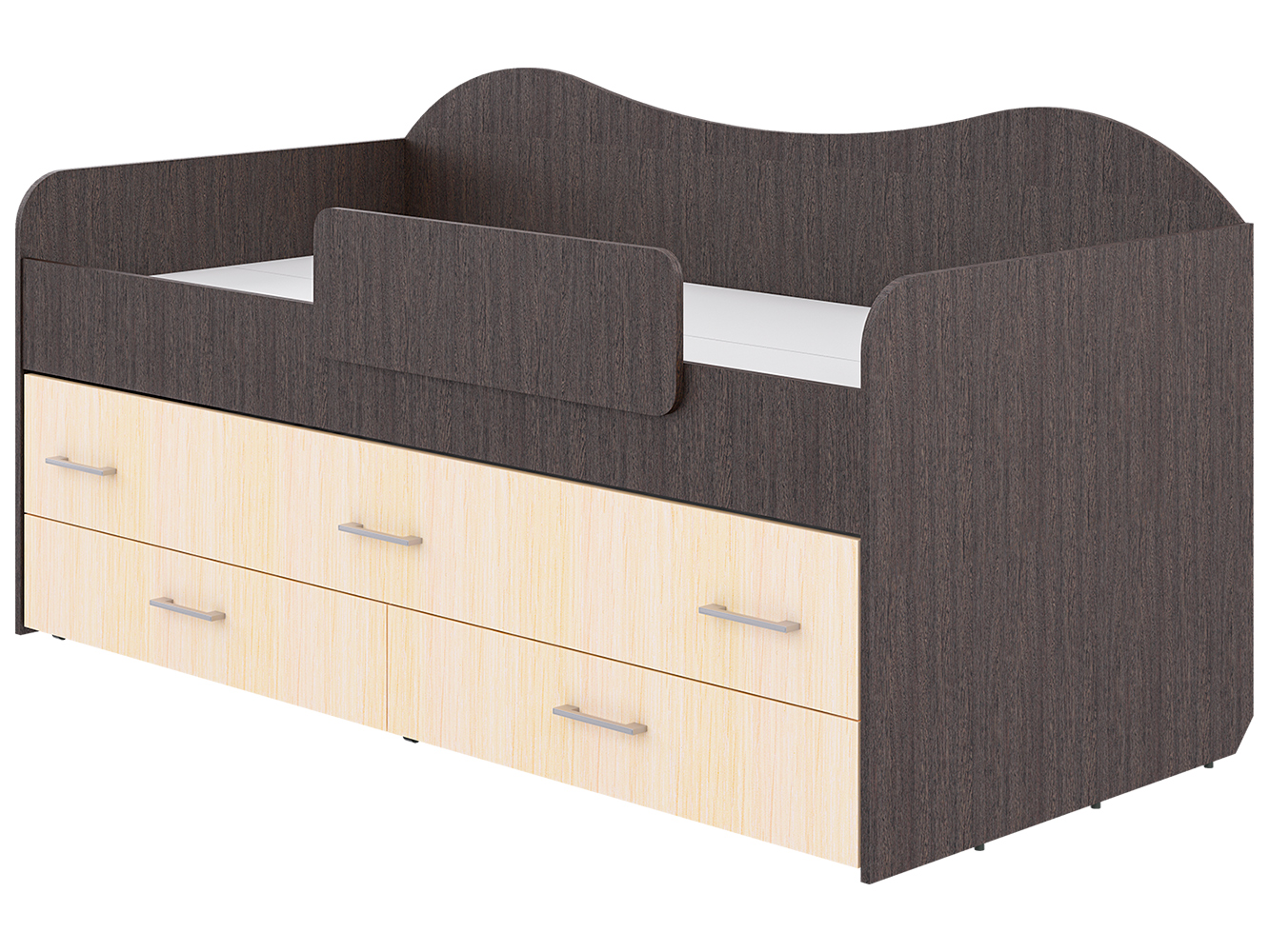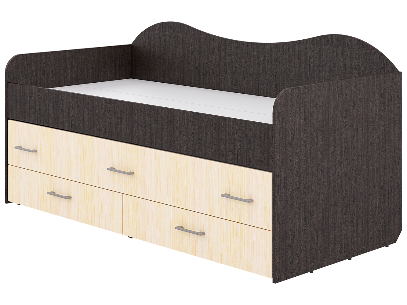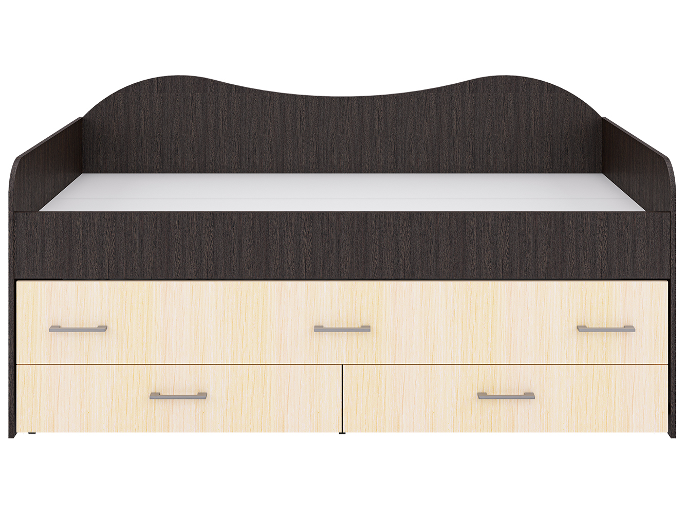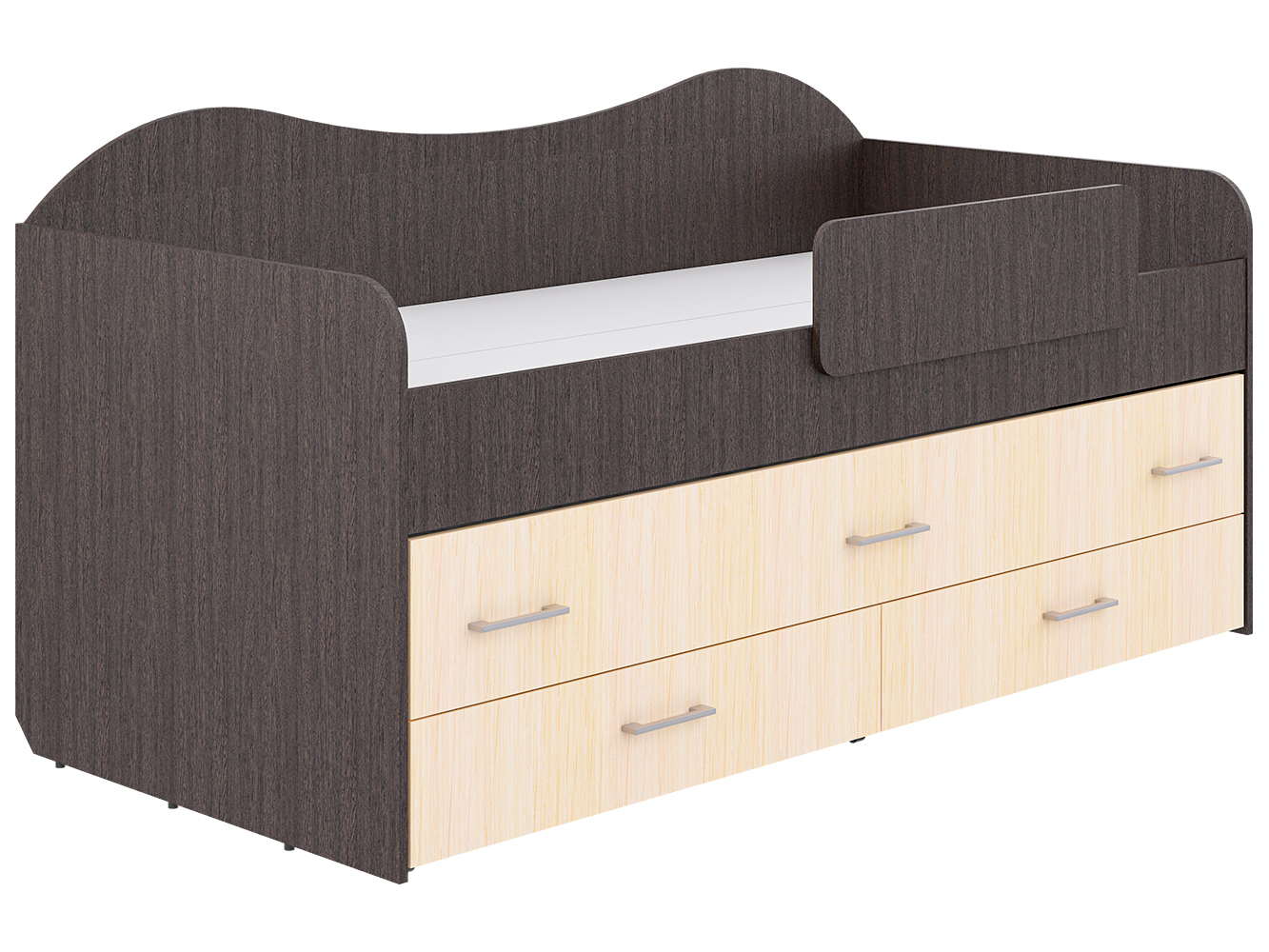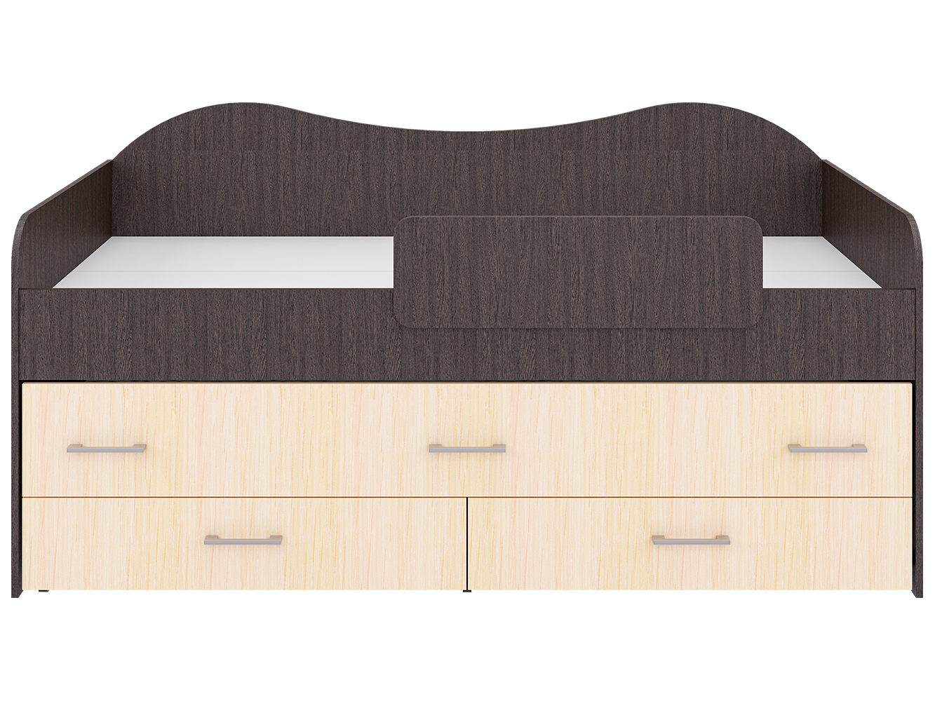 Изготовлена кровать из качественного ламинированного ДСП толщиной 16 мм класса Е1 - самого популярного материала для производства корпусной мебели, обеспечивающего необходимую прочность и долговечность деталей. Все края обработаны ударопрочной кромкой ПВХ, которая значительно увеличивает срок эксплуатации изделия. Для сборки используется фурнитура ведущих мировых производителей.