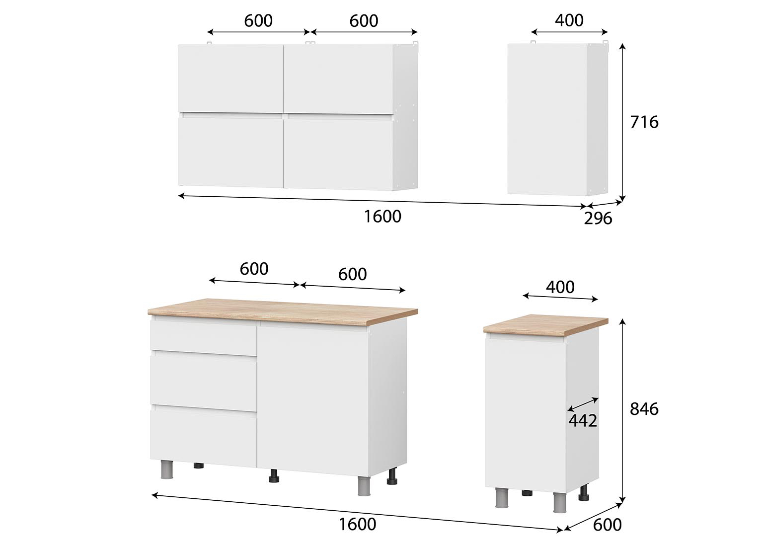 Все модули комплектуются столешницей 26 мм.