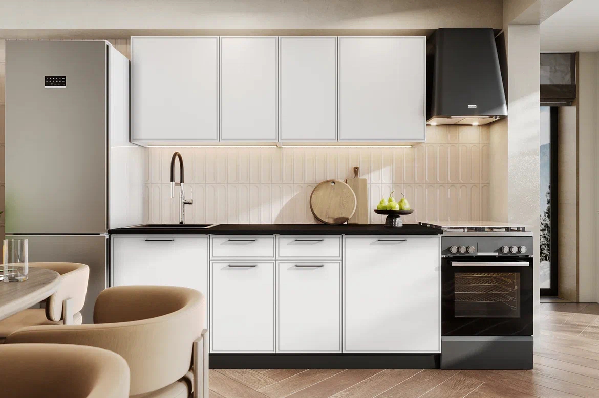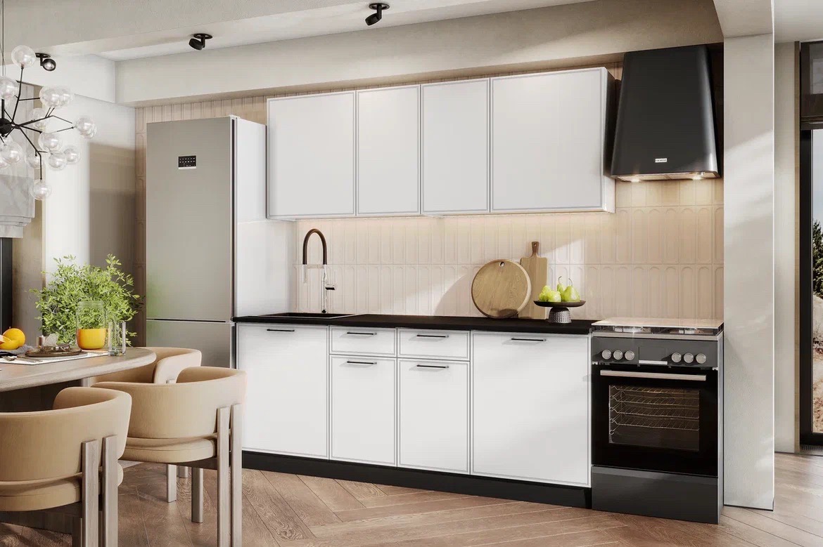 Кухонный гарнитур «Арнуво» Белый Бланж 200 см — практичное решение для современной кухни. Комплект включает верхние и нижние шкафы со столешницей, обеспечивая удобную организацию хранения кухонной посуды, продуктов и аксессуаров. Продуманная конструкция модулей, вместительные ящики и стандартные размеры делают гарнитур удобным для ежедневного использования и легким для размещения в большинстве кухонных помещений.