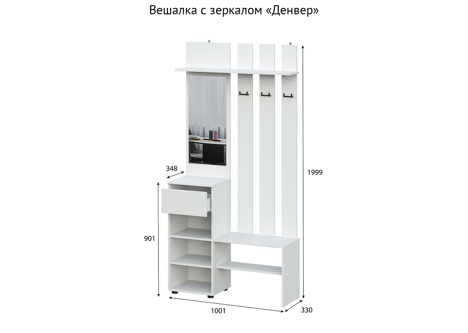 — полка вешалки — до 3 кг.Шкаф двухстворчатый «Денвер» Белый