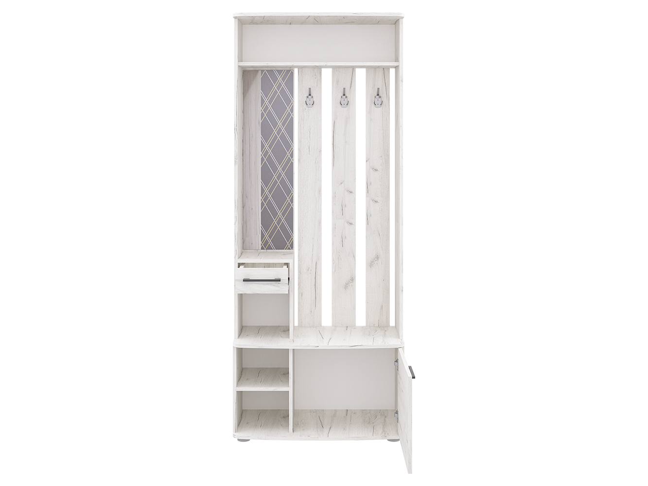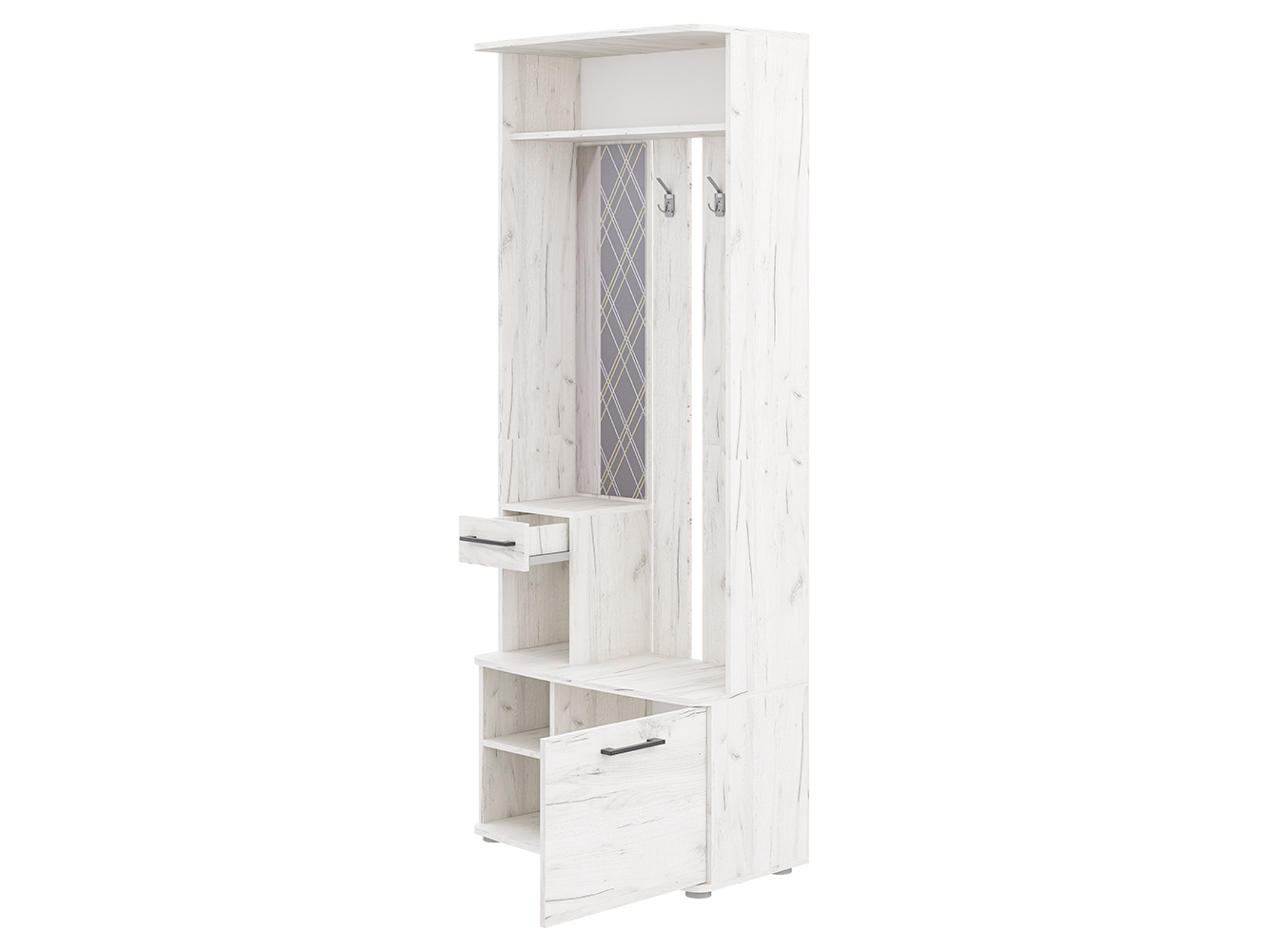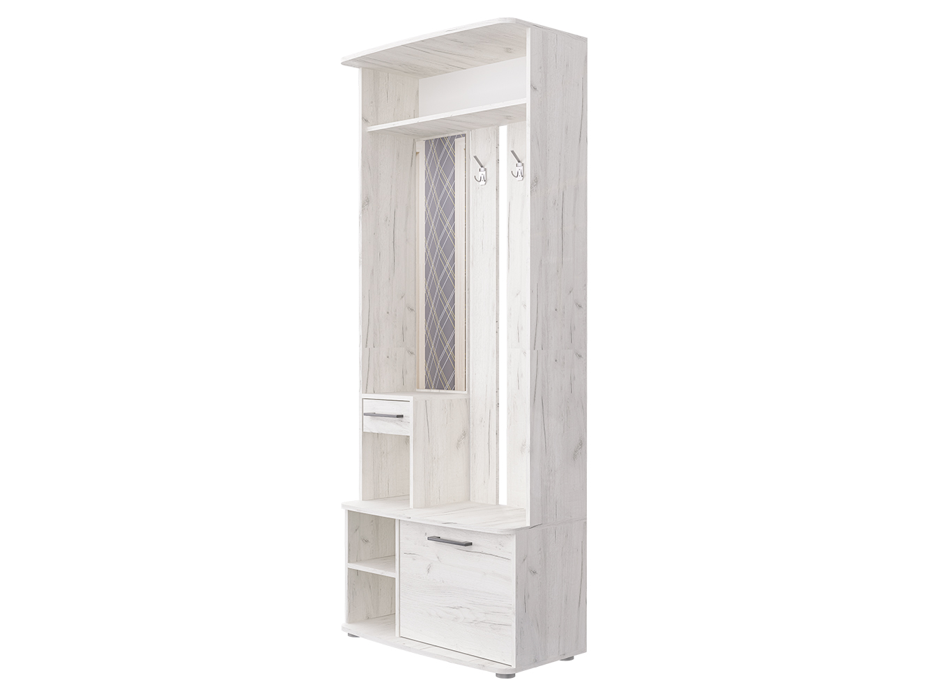 Меньше метра в длину, она впишется в любой интерьер и станет незаменимым домашним помощником. Несмотря на небольшие размеры, модель может вместить в себя немало одежды, обуви и головных уборов. Для этого в правой части ПР-10 есть открытая вешалка с крючками. Под ней – ящик для обуви с откидной дверцей, который также служит полкой для сумок, портфелей, зонтов. Кроме того, в верхней части прихожей оборудована полка для головных уборов и шарфов. Прихожая ПР-10 миниатюрна и эргономична, в ней нет ничего лишнего.