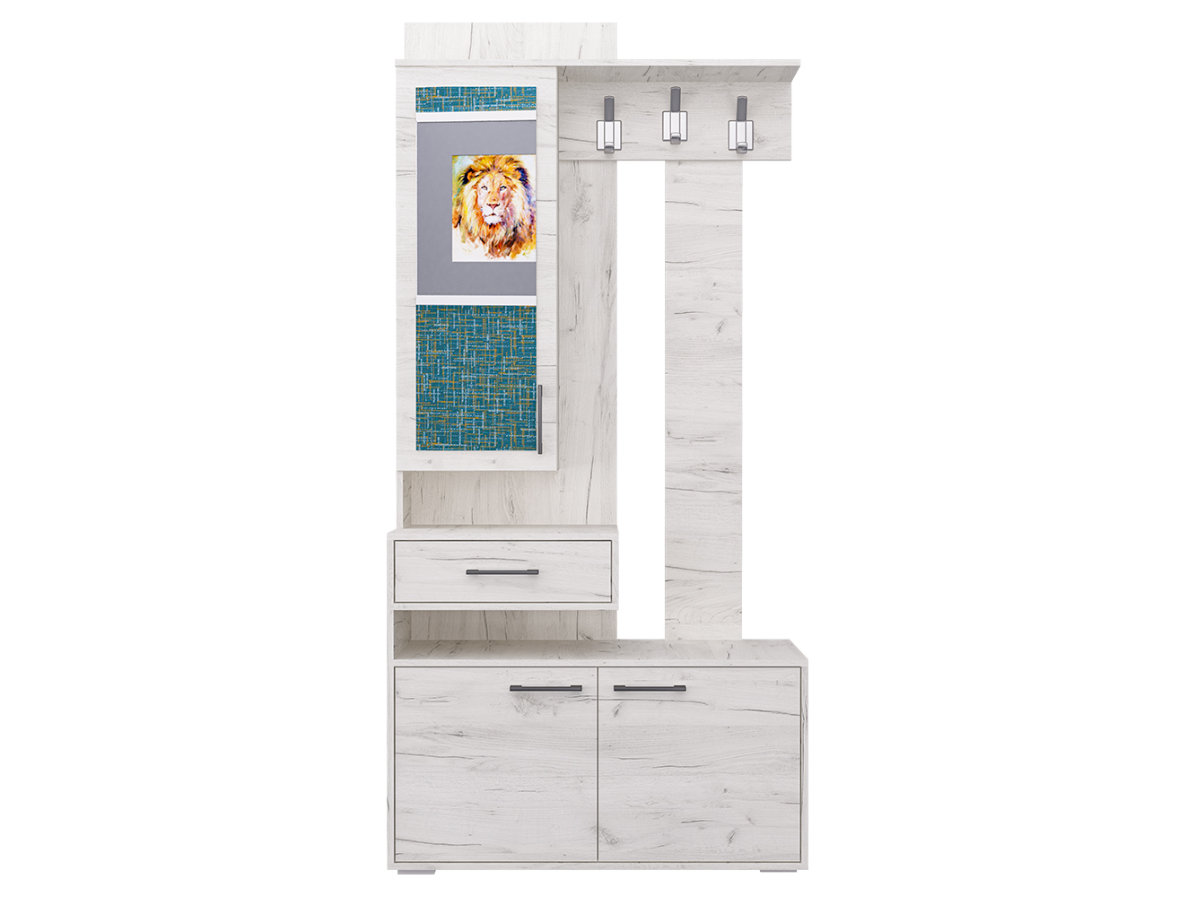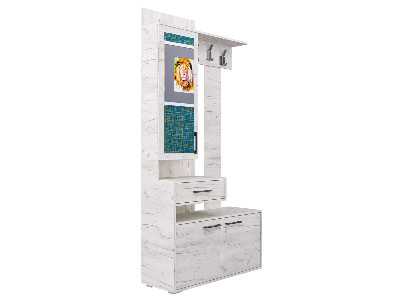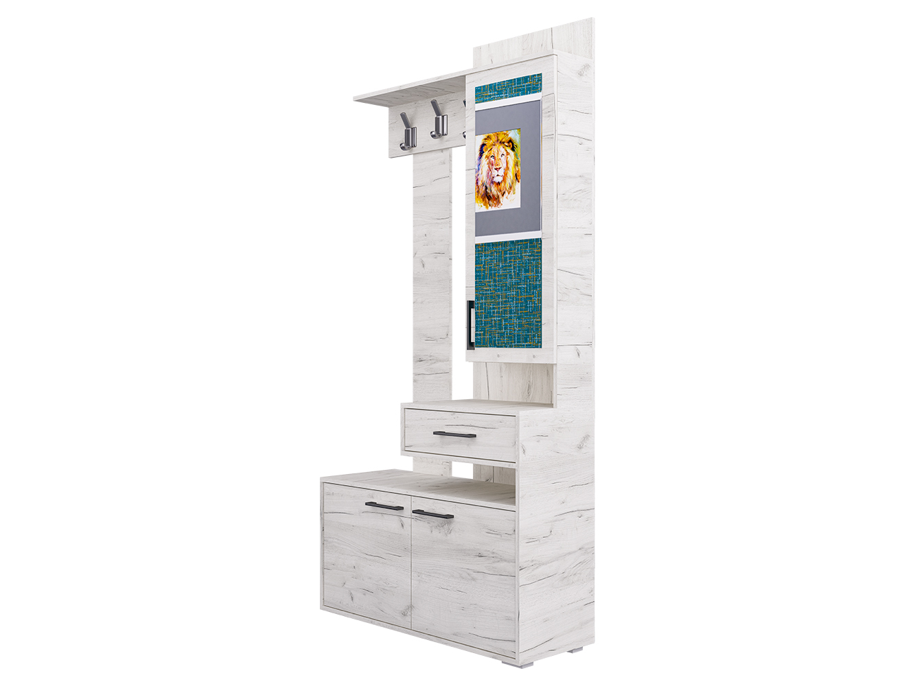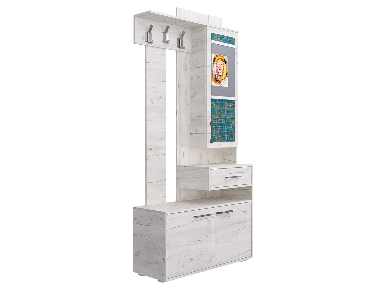 Прихожая ПР-11 придётся по вкусу даже самому притязательному покупателю. Ведь прихожая экономит место, придаёт помещению современный вид и создаёт уют. ПР-11 включает в себя открытую вешалку с крючками, навесной шкаф с зеркалом и полочками и вместительную тумбу для обуви. А навесной ящик для мелочей с создаёт эффект парения, образуя под собой открытую нишу. Такой приём свойственен современному дизайну. Отметим, что все элементы прихожей не существуют сами по себе, они создают собой дополнительные полки и тем самым образуют единый ансамбль.