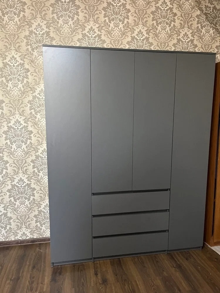 Шкаф оснащён четырьмя распашными створками, которые обеспечивают удобное хранение одежды и постельного белья. Также шкаф имеет 3 выдвижных ящика, которые обеспечивают дополнительное место для хранения вещей. Всё это делает шкаф «Денвер» стильным и практичным решением для организации хранения вещей в спальне или прихожей, — идеальный выбор для тех, кто ценит максимальную функциональность в мебели.