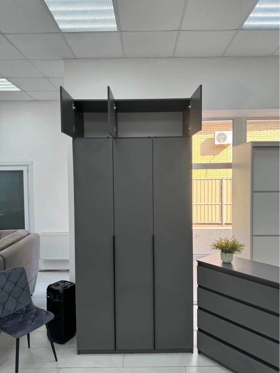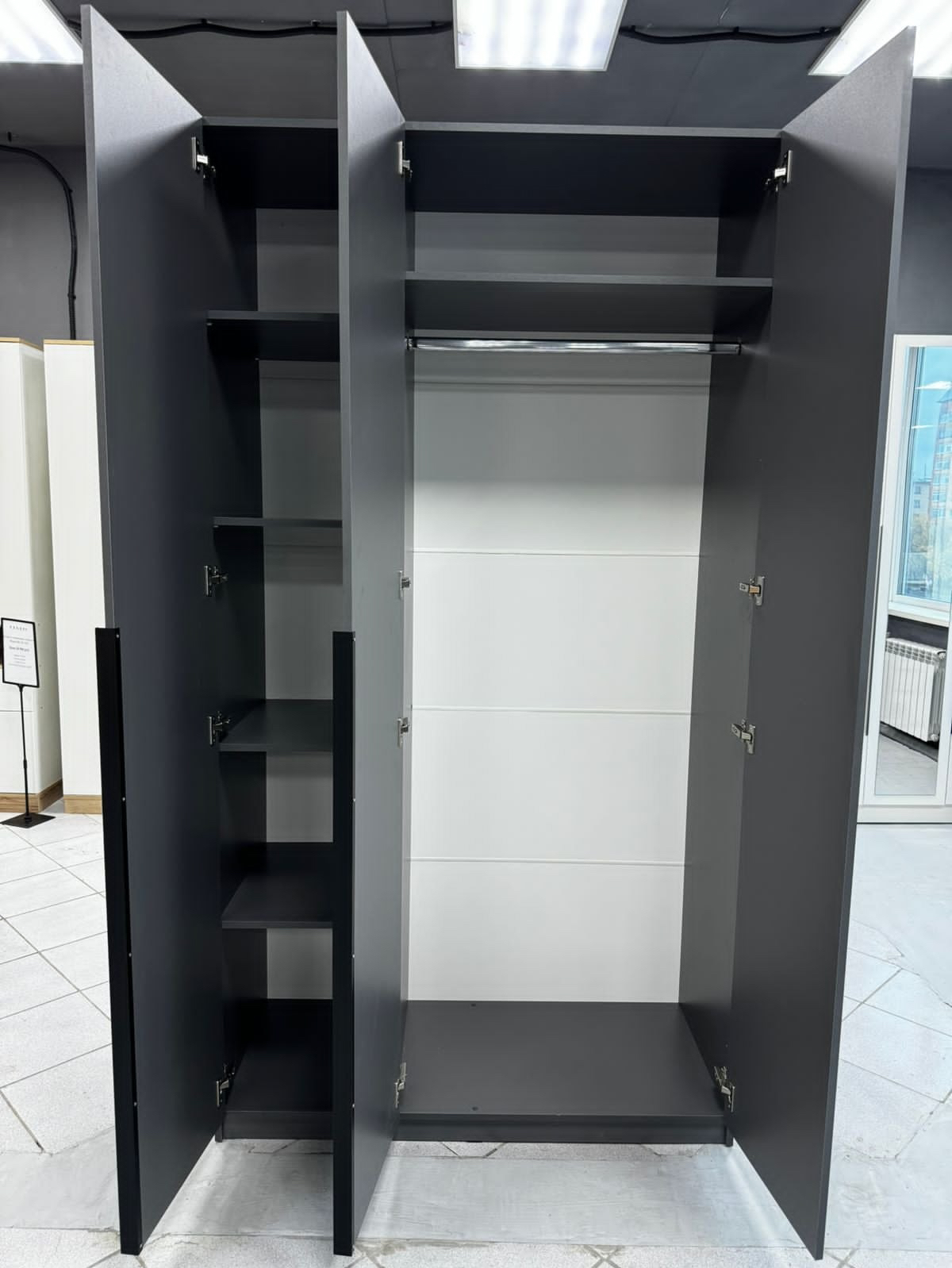 Шкаф 1200 «ШК 5» Графит сочетает в себе функциональность и эстетический дизайн, становясь незаменимым элементом вашего интерьера.