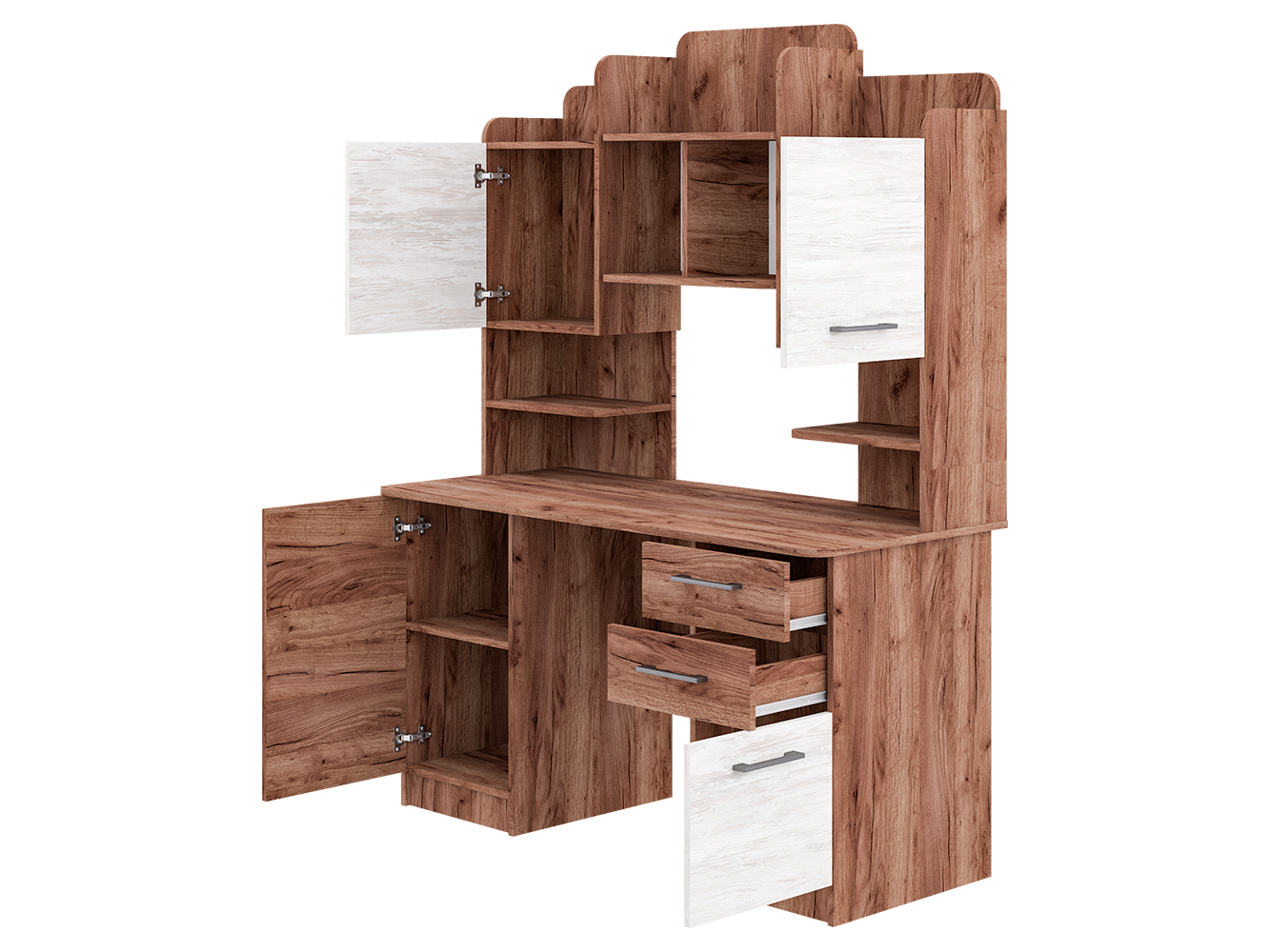 Стол для учебы — большой, эргономичный и максимально функциональный письменный/компьютерный стол для дома, офиса или учебного пространства. Модель создана для тех, кому важно удобное рабочее место и продуманная система хранения.
