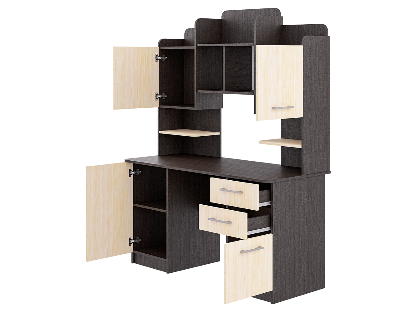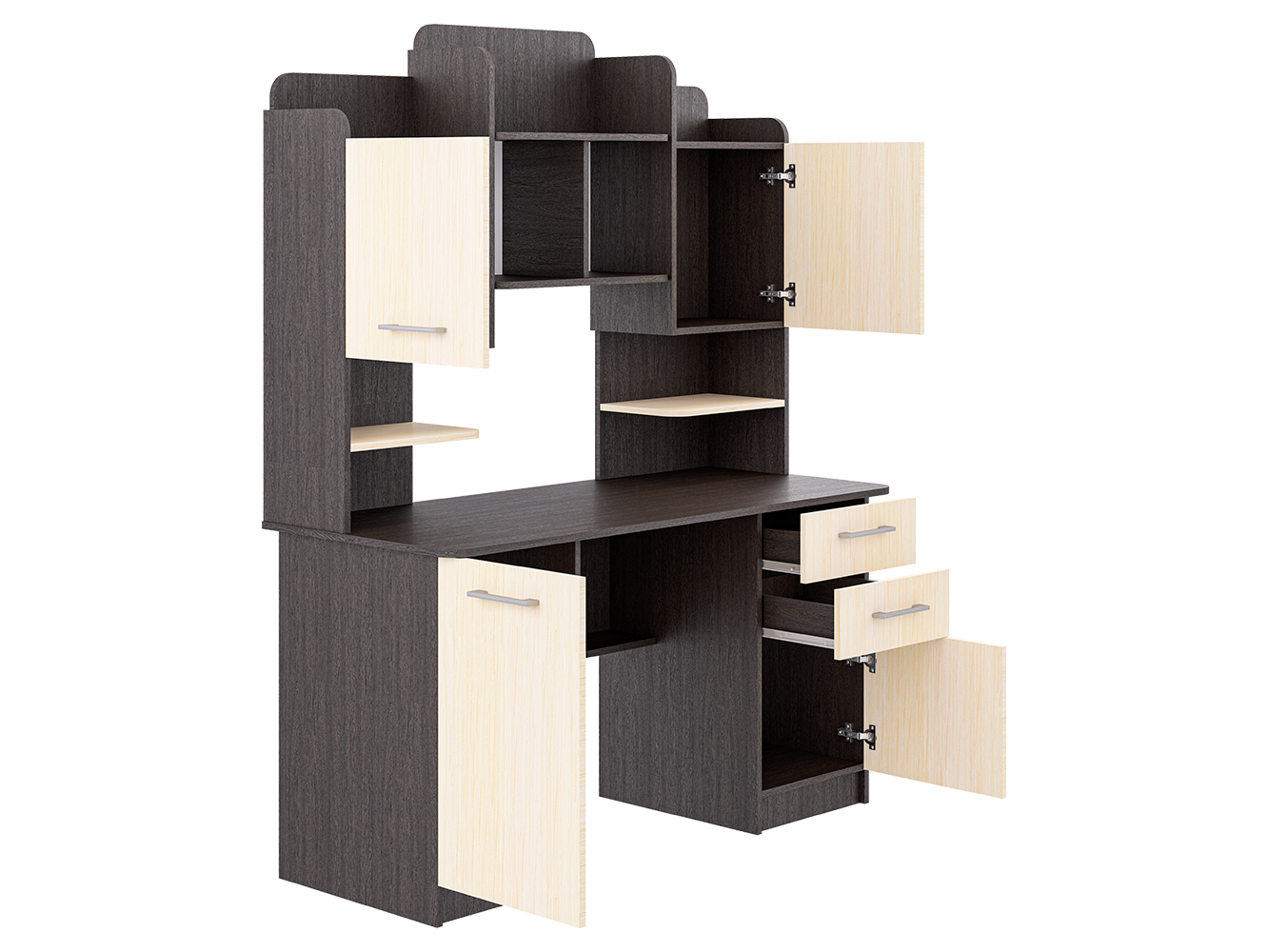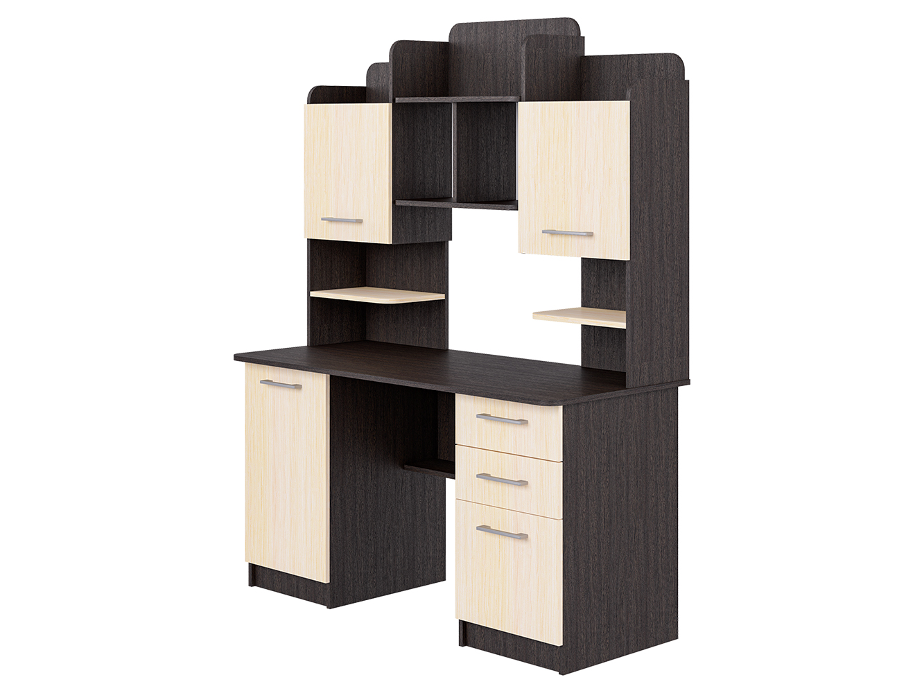 Стол для учебы — большой, эргономичный и максимально функциональный письменный/компьютерный стол для дома, офиса или учебного пространства. Модель создана для тех, кому важно удобное рабочее место и продуманная система хранения.