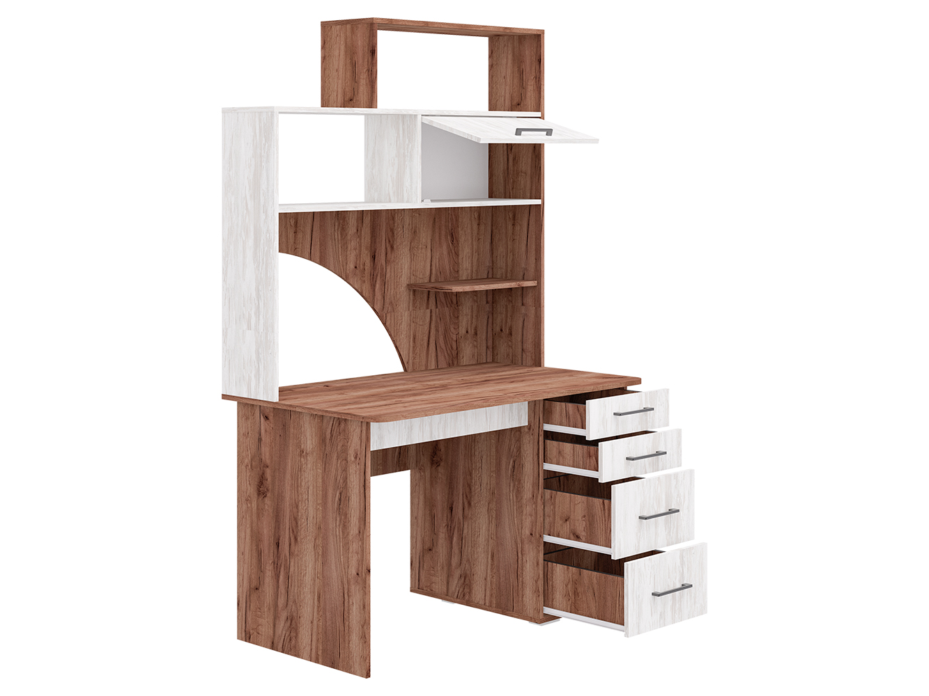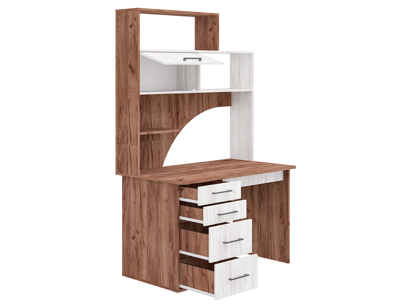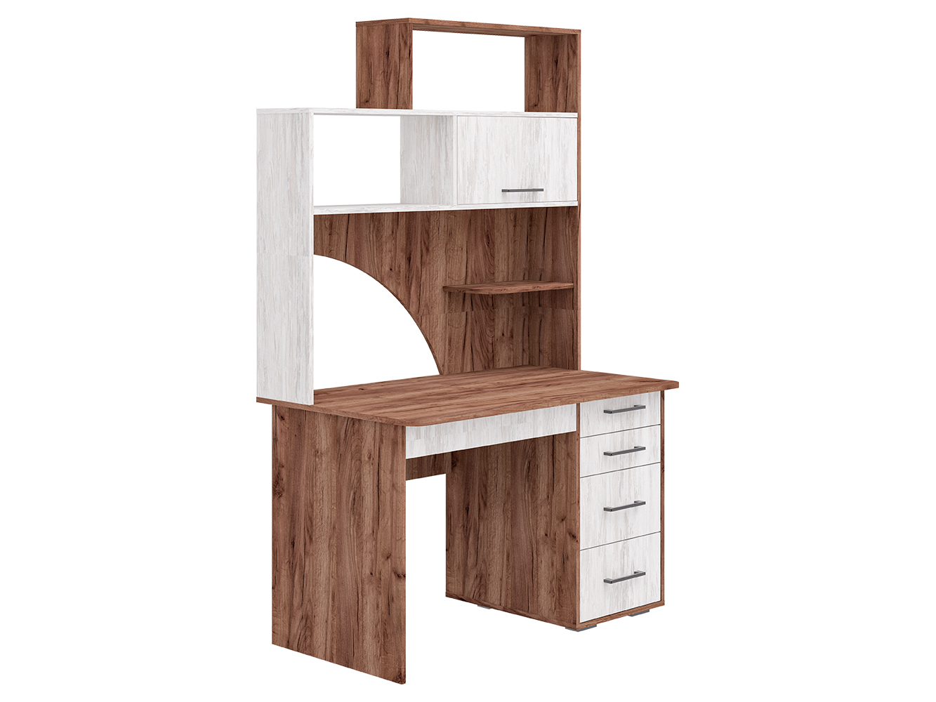 Рабочий стол с надстройкой «СК-56»; ВхШхГ: 1910х1200х700 мм Продуманный функционал данной модели при обязательном и безупречном качестве. Конструкция оснащена: прямая столешница, четыре вместительных ящика полного выдвижения (шариковые направляющие) разных по высоте, пять полок. Края стола сглажены для комфортного пользования, регулируемые опоры компенсируют возможные неровности пола. Данная модель предусматривает универсальную сборку, как по левому, так и по правому углу, ориентируясь по «ведущему» монитору, благодаря опоре регулируется по высоте. Изделие МФ «Пирамида» выполнено из высококачественного, износостойкого и экологичного материала – ЛДСП класса Е1, толщиной 16мм. Края обработаны ударопрочной кромкой ПВХ, что значительно увеличивает срок эксплуатации изделия. Для сборки используется фурнитура от ведущих мировых производителей. Все изделия фабрики сертифицированы и абсолютно безопасны для здоровья.