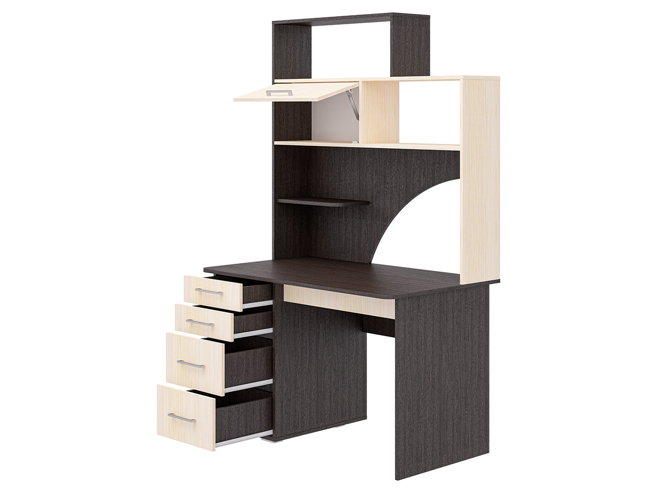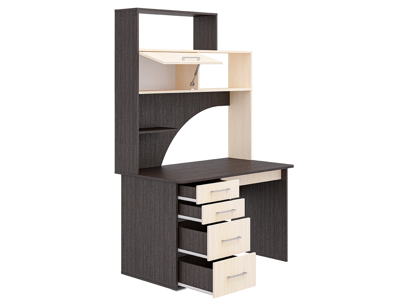 Рабочий стол с надстройкой «СК-56»; ВхШхГ: 1910х1200х700 мм Продуманный функционал данной модели при обязательном и безупречном качестве. Конструкция оснащена: прямая столешница, четыре вместительных ящика полного выдвижения (шариковые направляющие) разных по высоте, пять полок. Края стола сглажены для комфортного пользования, регулируемые опоры компенсируют возможные неровности пола. Данная модель предусматривает универсальную сборку, как по левому, так и по правому углу, ориентируясь по «ведущему» монитору, благодаря опоре регулируется по высоте. Изделие МФ «Пирамида» выполнено из высококачественного, износостойкого и экологичного материала – ЛДСП класса Е1, толщиной 16мм. Края обработаны ударопрочной кромкой ПВХ, что значительно увеличивает срок эксплуатации изделия. Для сборки используется фурнитура от ведущих мировых производителей. Все изделия фабрики сертифицированы и абсолютно безопасны для здоровья.