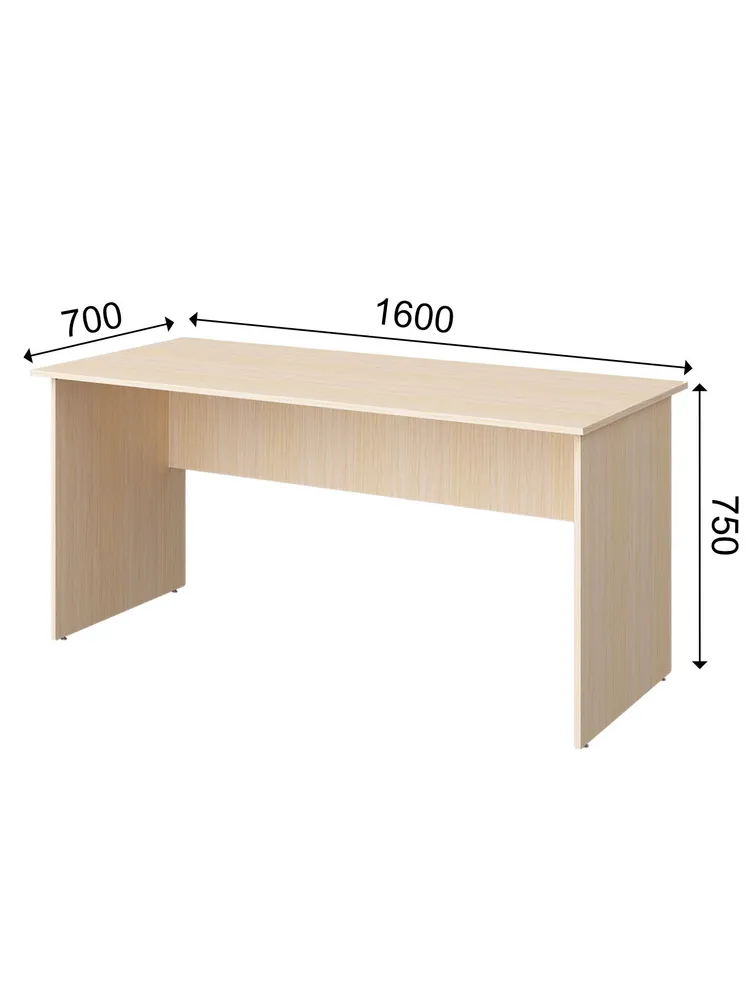Прямой прямоугольный стол, сочетает практичность, строгий и лаконичный дизайн. Исполнен в классической цветовой палитре. Ширина модели позволяет организовать полноценное, функциональное рабочее место. Регулируемые опоры компенсируют возможные неровности пола.
