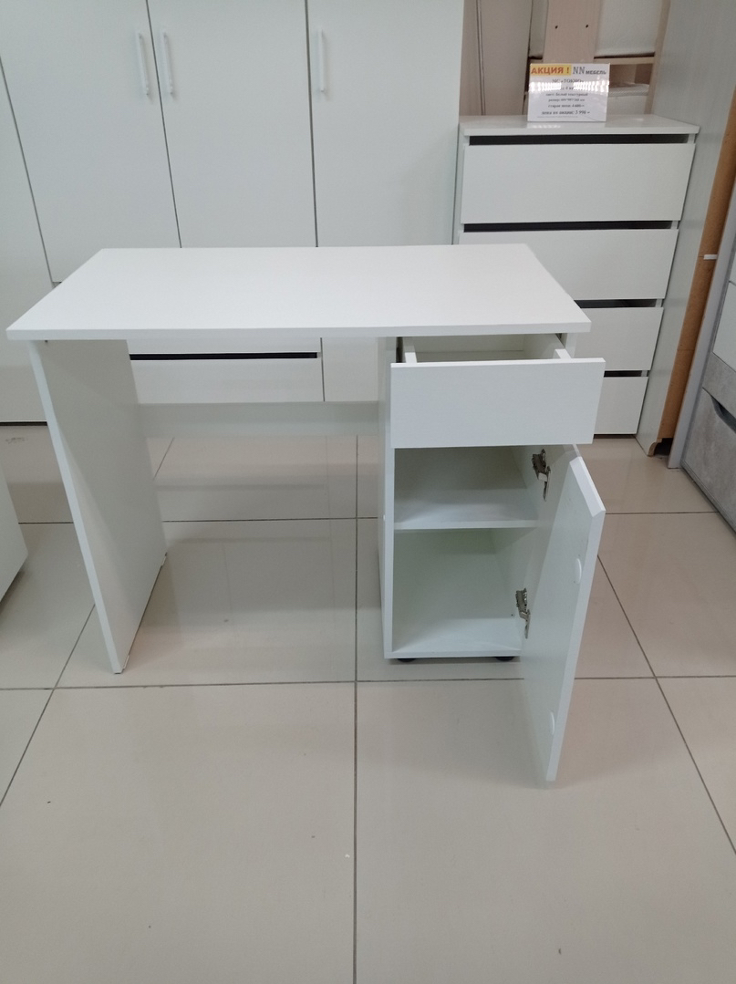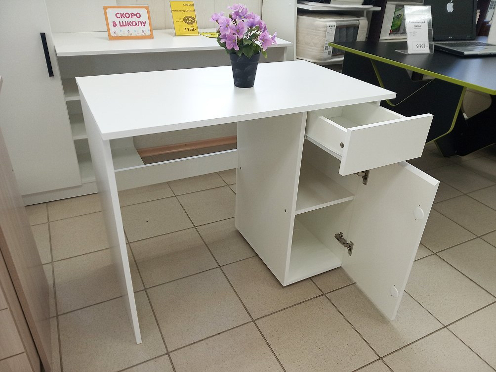 Письменный стол Токио — удобное рабочее место для школьника или студента. На широкой столешнице можно комфортно разместить необходимые для занятий принадлежности, в том числе ноутбук, книги, тетради. Выдвижной ящик отлично подходит для хранения канцелярских принадлежностей — они всегда будут под рукой. Ниже расположены две вместительные секции, скрытые распашной дверцей: сюда можно положить учебники, папки, тетради и прочие предметы. Модель предусматривает зеркальную сборку, за счет чего ее можно разместить в любом удобном месте комнаты. Белый цвет мебели придает ей современный вид и освежает помещение.