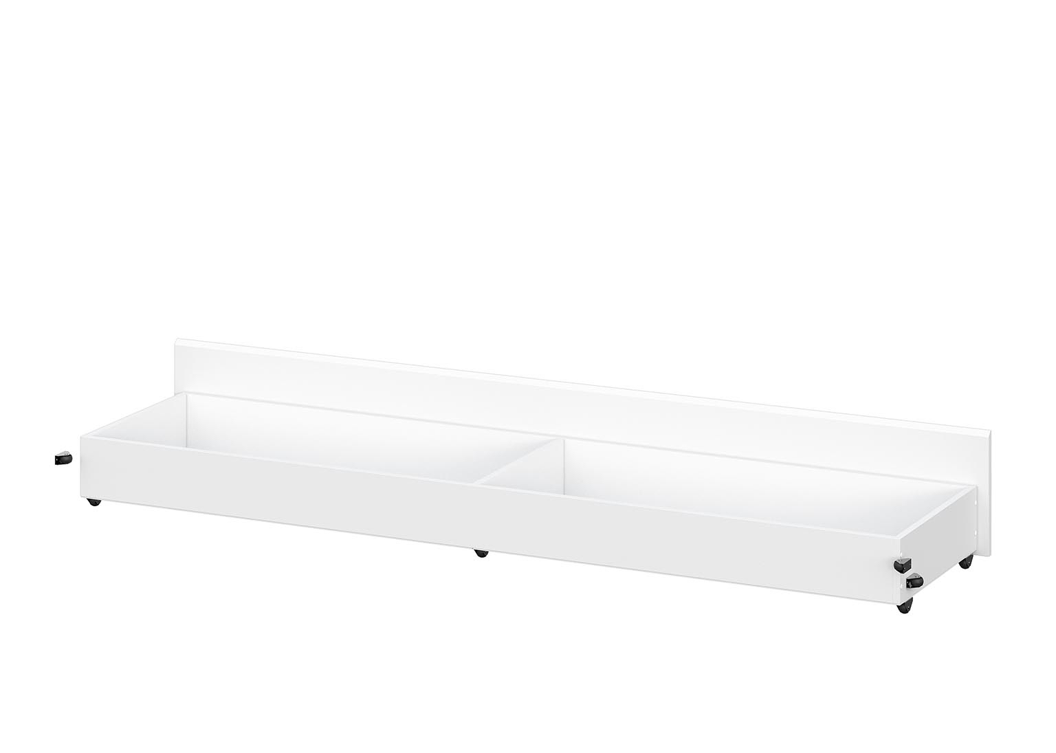 Устанавливается на выкатных роликах. Ящик разделяется по центру перегододкой. Габариты каждой секций внутри ящика (ШхВхГ) 946х132х418мм.