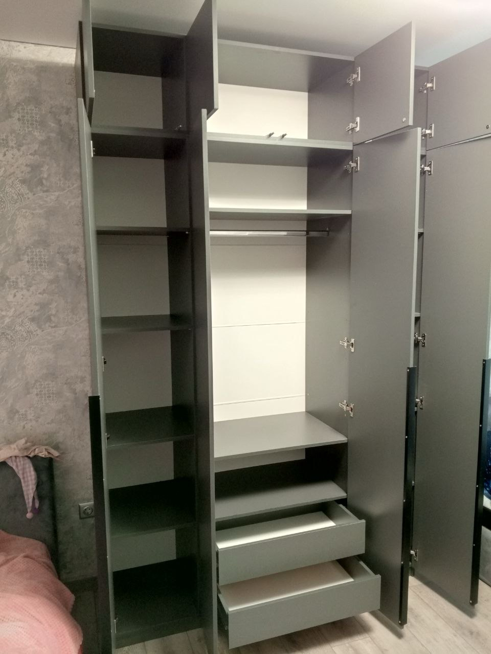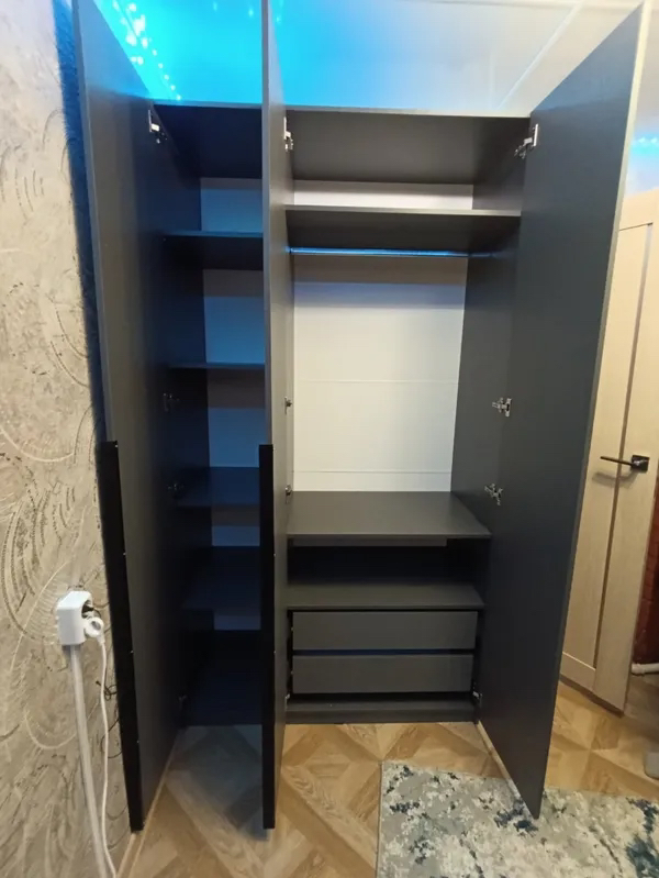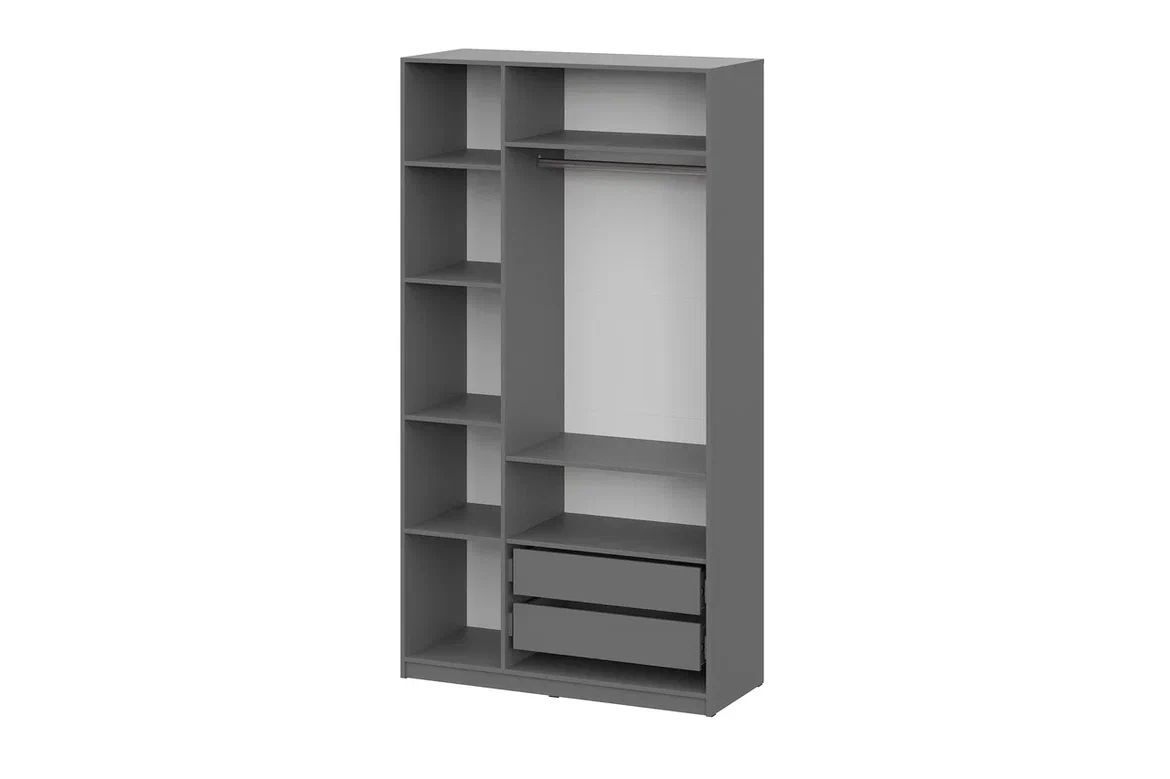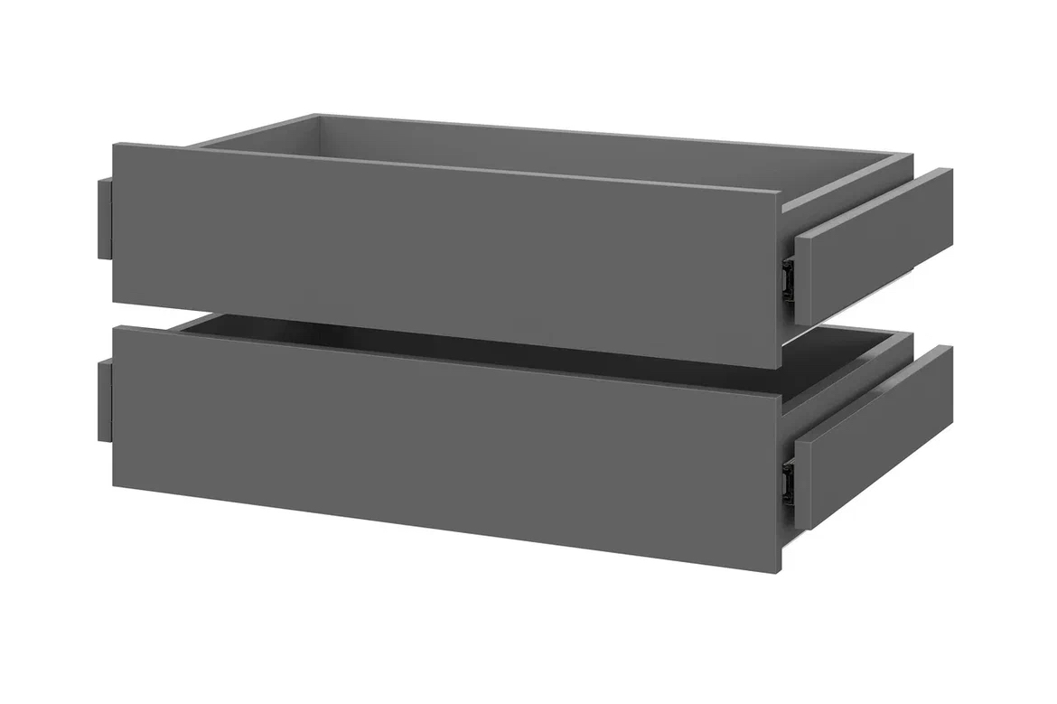 Ящики в шкаф «ШК 5» Графит позволит настроить шкаф в соответствии с вашими потребностями. Вы можете установить в шкаф один комплект ящиков одновременно. Для наилучшей организации пространства и скрытия содержимого верхнего ящика мы рекомендуем также приобрести комплект полок.